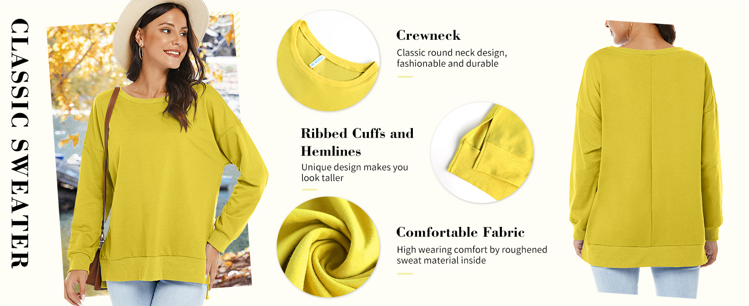 • السمات: سويت شيرت للسيدات/مقاس مريح/سويت شيرت رياضي/أكمام طويلة/رقبة دائرية/أساور أكمام وحاشية مضلعة/بلوفر بلون موحد/بلايز بفتحة جانبية/بلوفر كاجوال.