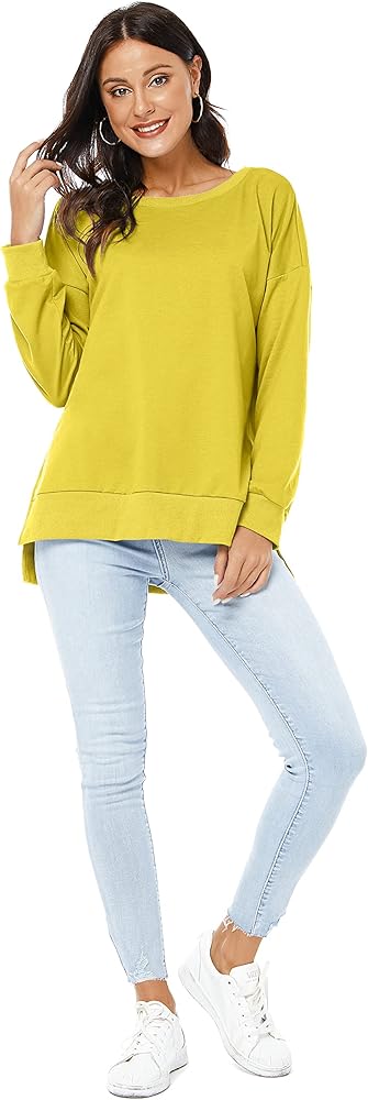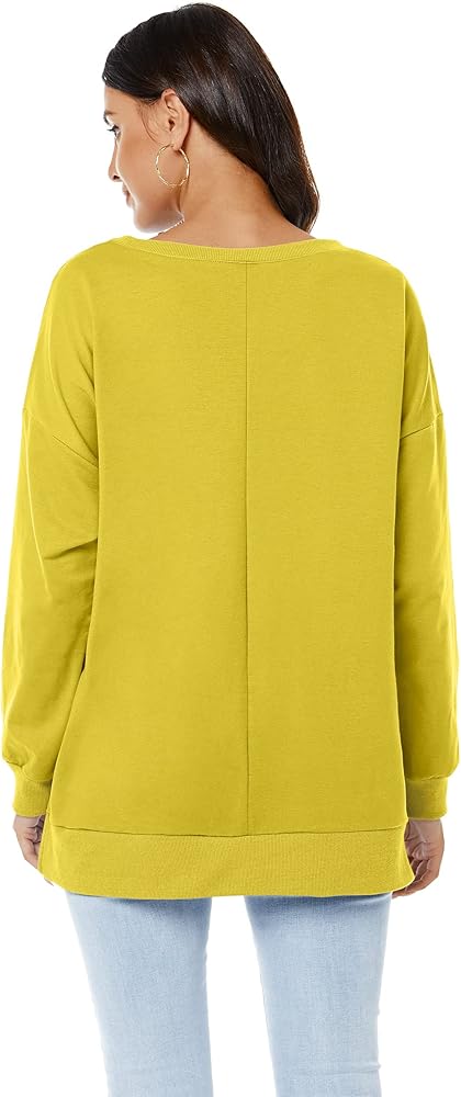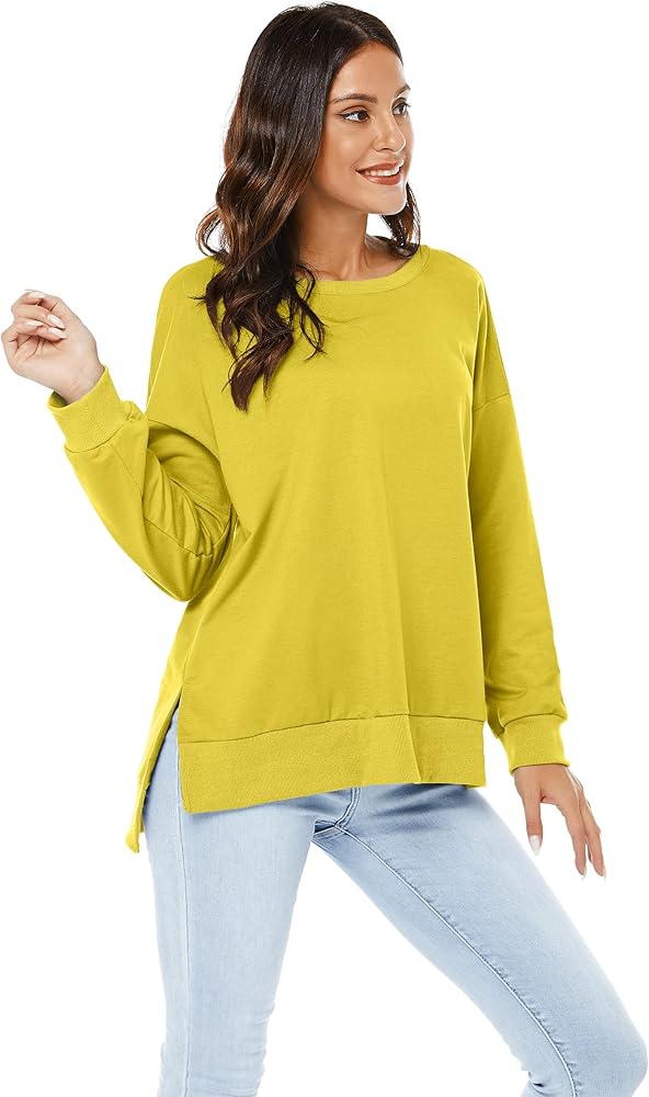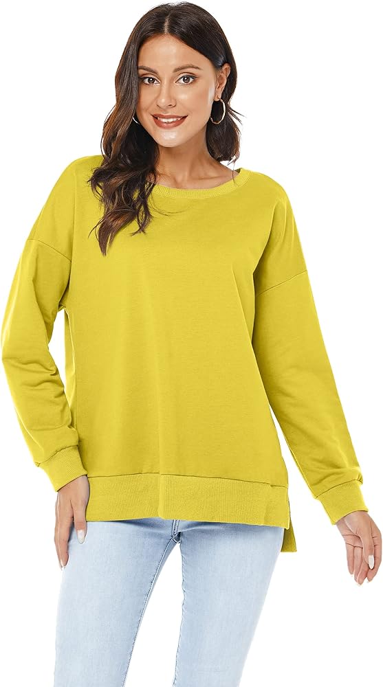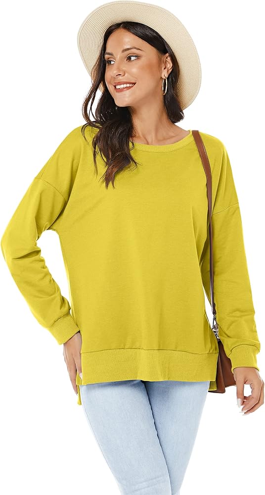 بلوفر VIISHOW نسائي طويل الأكمام بياقة دائرية وفضفاضة ومقاس أساسي بلون موحد وفتحة جانبية