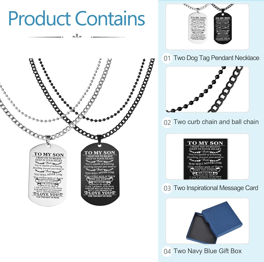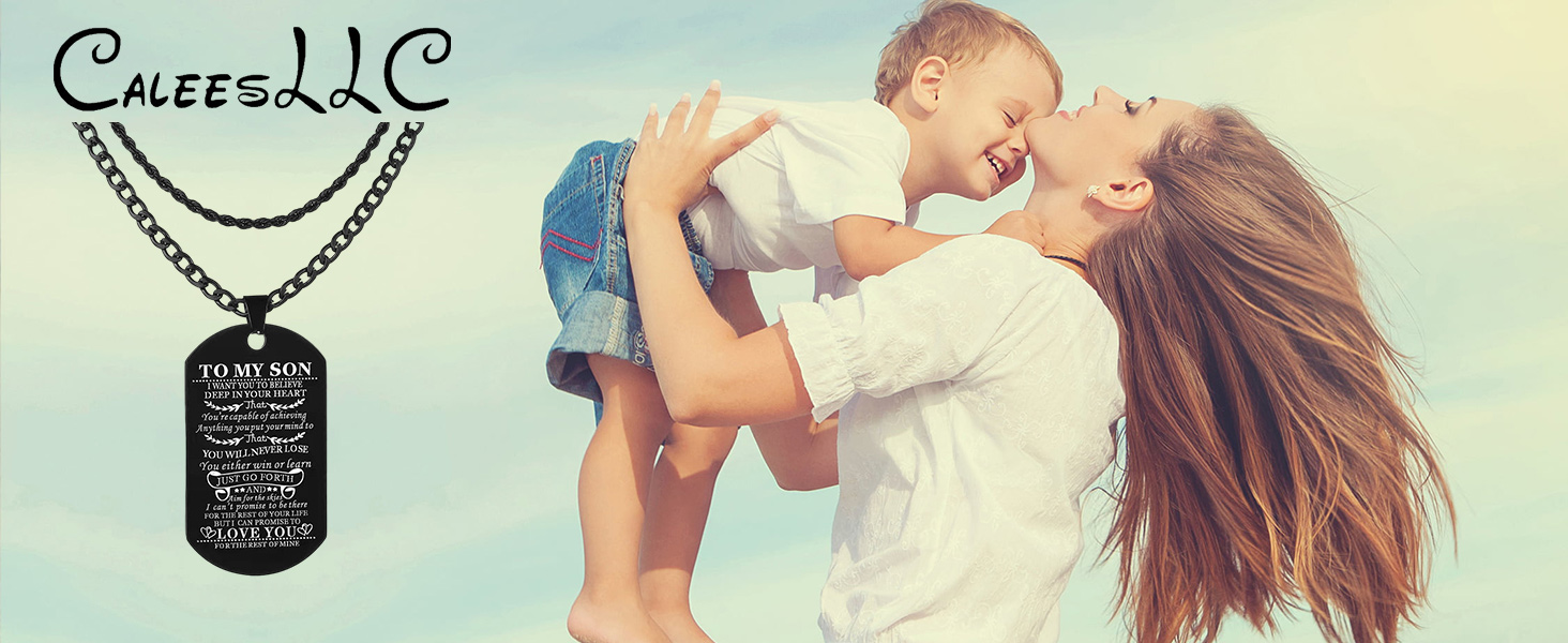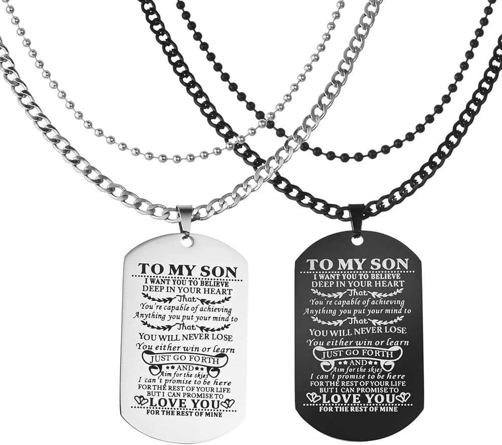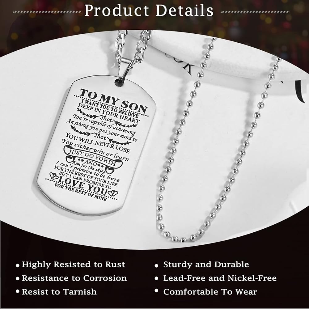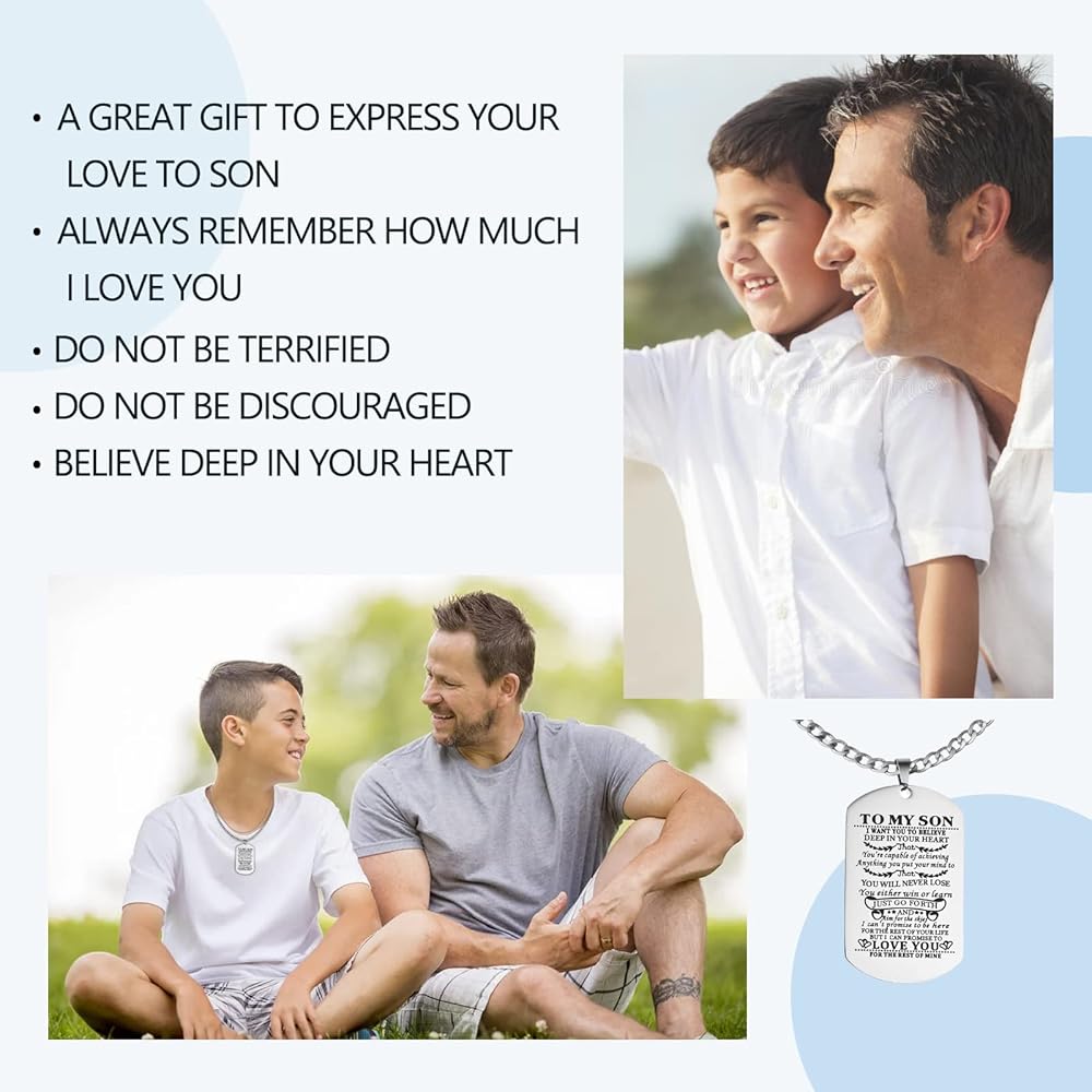 【هدية قيمة للابن】ستجعل قلادة البطاقات إلى ابني طفلك محبوب بعمق، يمكنك تقديم أفضل هدايا عيد ميلاد للابن، هدايا التخرج، إلخ.