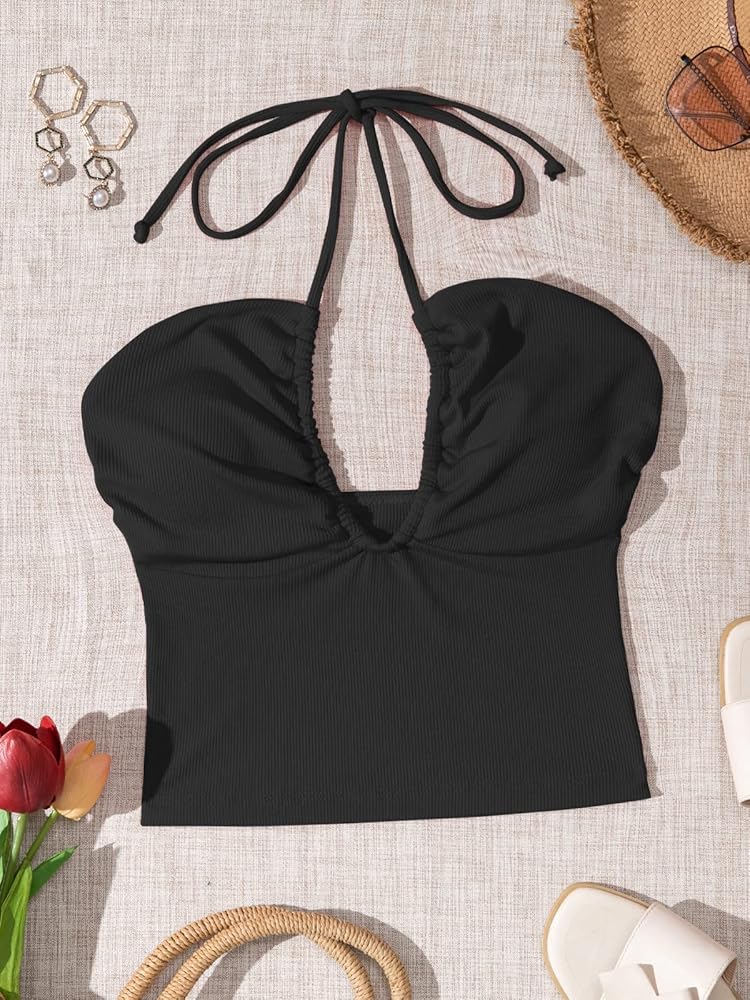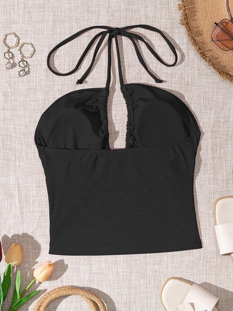 • قميص قصير مضلع برقبة على شكل حرف V للسيدات، قميص بدون أكمام للسيدات تم إنتاجه بتفاصيل مضلعة، ويتميز بوجود رسن، وظهر مفتوح، وخط عنق على شكل حرف V، ومقاس جذاب. قميص بدون أكمام نسائي طويل مثير مثالي للاستخدام اليومي للحصول على مظهر فتاة رائعة ومريح. حمالة صدر رياضية ذات أشرطة كامي تلتف حول خصرك وتربط حول الرقبة. مكتمل بنسيج ناعم ومصمم بمقاس مناسب للرسن. ارتدي هذا القميص بدون أكمام ذو الرقبة على شكل حرف V مع تنورة داني للحصول على ثنائي مصنوع في الجنة.