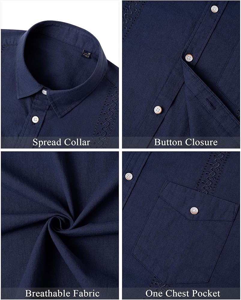 خالٍ من الانكماش: القميص الكاجوال قصير الأكمام مصنوع من نسيج القطن والكتان عالي الجودة مع معالجة مضادة للانكماش، ناعم ومريح، سهل الكي، خفيف الوزن ورائع، جيد التهوية، يزيل الحشو، ويمنحك ارتداءً أفضل خبرة.