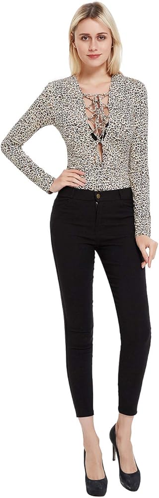 - مقاس نحيف، تصميم عادي، لون ثابت، طباعة جلد النمر