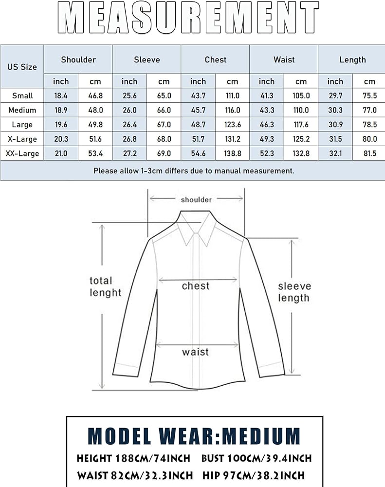 【مطابقة سهلة】 قمصان رجالية بأكمام طويلة وأزرار سفلية، يمكن أن تتماشى مع السراويل والسراويل القصيرة والجينز لخلق نمط عطلة يومي وأوقات فراغ. أو نمط العمل --- قميص كاجوال رجالي للعمل، يتماشى مع البنطلونات والأحذية الجلدية. كما أن ملابس الزفاف الرجالية تعد خيارًا جيدًا.