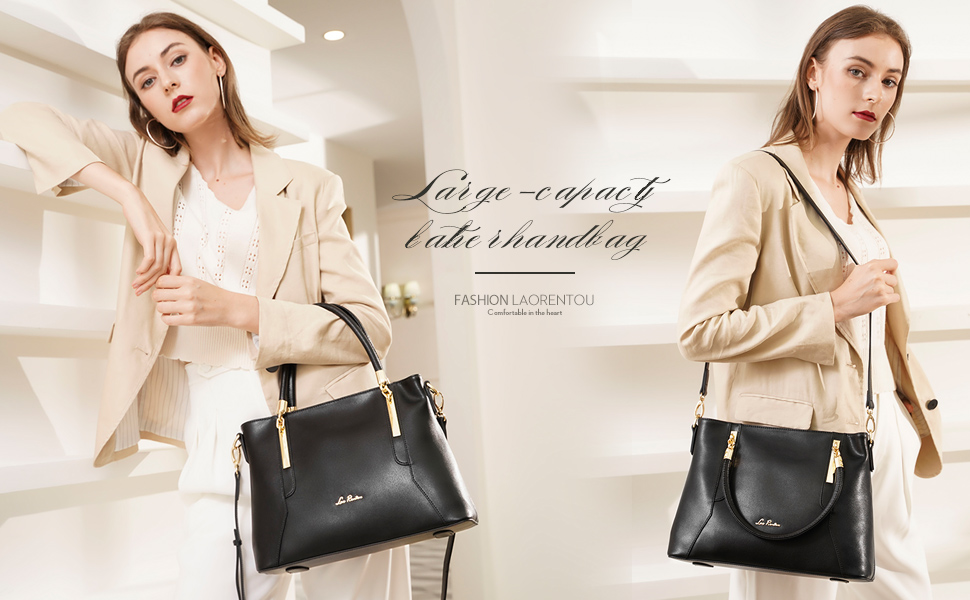 LAORENTOU حقيبة يد مصنوعة من جلد البقر للنساء ذات مقبض علوي محفظة سيدة حقائب جيوب كتب حقيبة كتف حقائب العمل