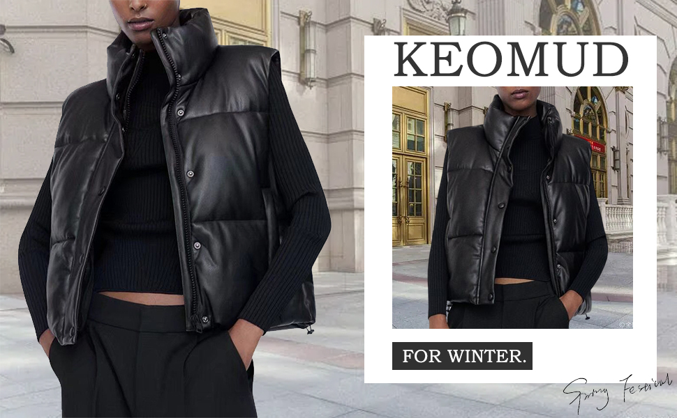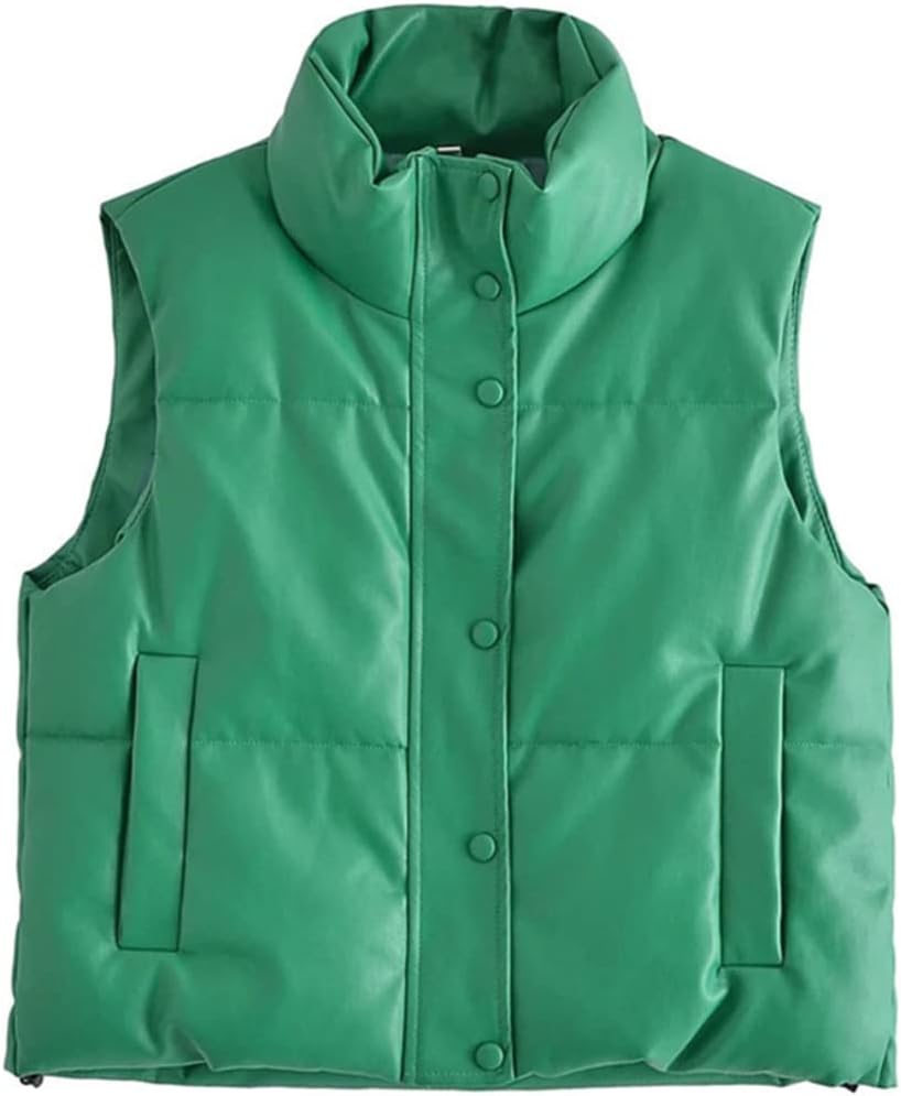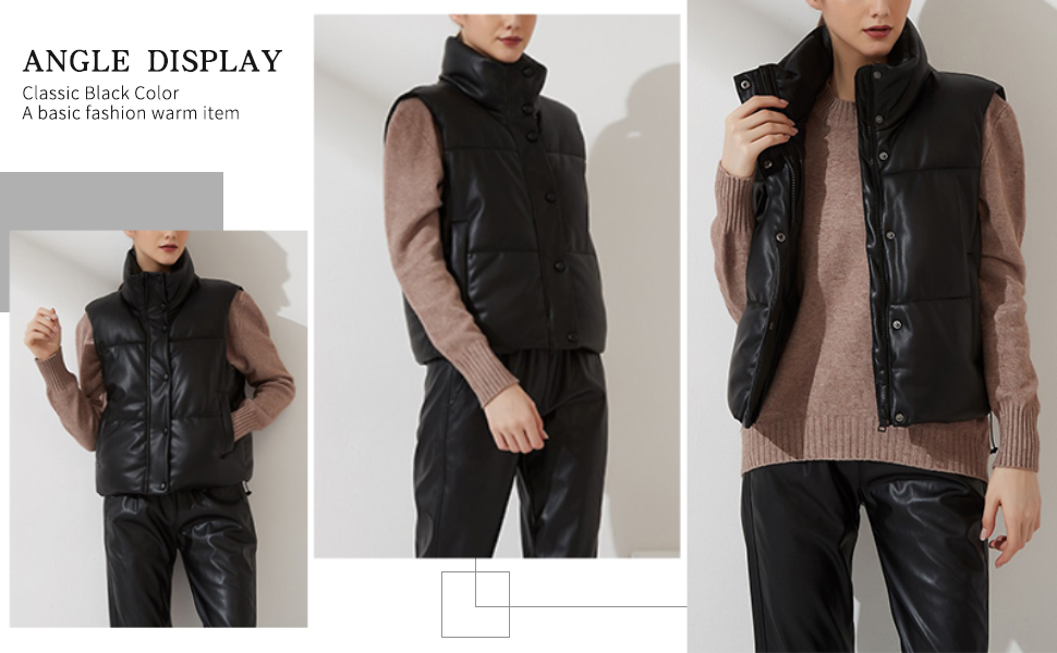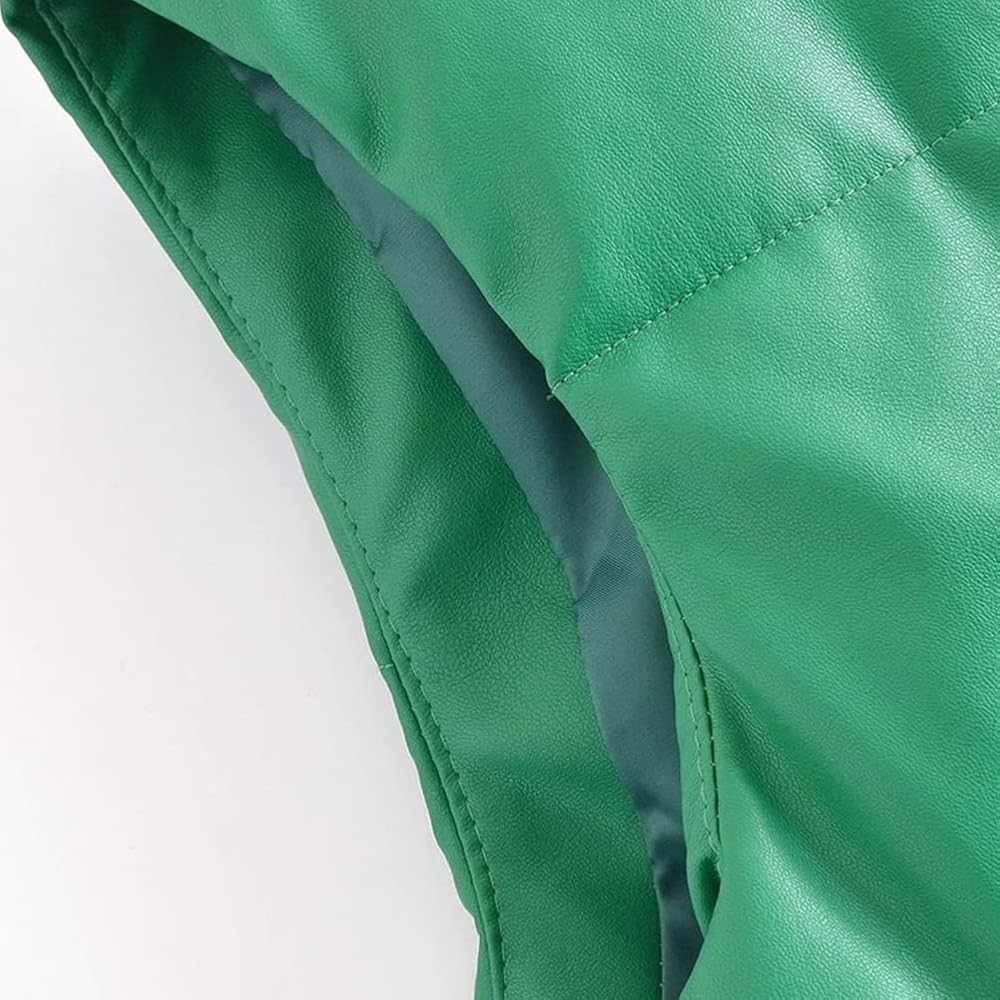 السترة المنتفخة القصيرة من الجلد الصناعي مثالية للارتداء مع السترات أو السترات أو الجينز لمظهر كاجوال، وتبقيك مرتاحًا وأنيقًا