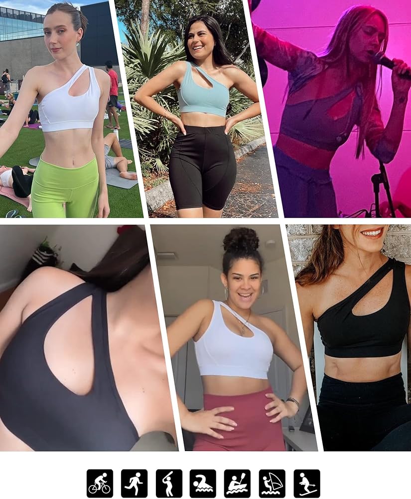 【تصميم فريد】: تصميم مجوف بكتف واحد يبرز خط الترقوة، مثير وجميل، ستتبدد الحرارة في الصدر بسرعة أثناء التمرين، التجربة جيدة جدًا. في اختبار ما قبل البيع الذي أجريناه، أعطت 95% من النساء ذوات الخبرة تصميمنا علامات عالية، ومنحت أثدائهن وقتًا مناسبًا للظهور، جميلة وأنيقة. هذا هو السبب الذي يجعلنا واثقين جدًا من أن نوصيك بهذا المنتج الممتاز. سوف تقدم لك Glamline بالتأكيد تجربة جديدة تمامًا.