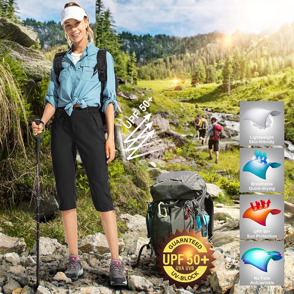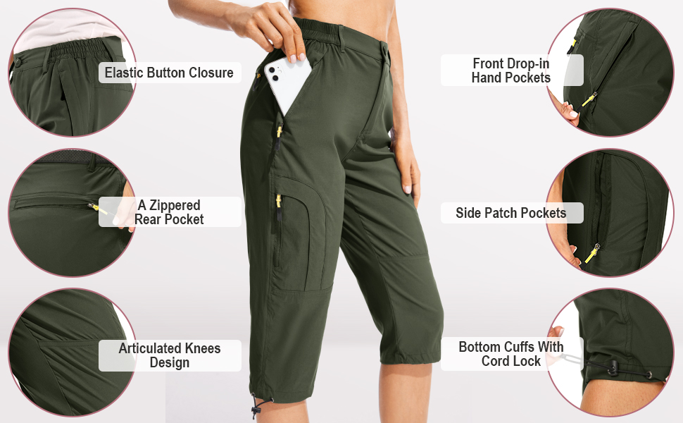 سراويل كابري للسيدات للمشي لمسافات طويلة: مناسبة للملابس الترفيهية غير الرسمية والخارجية، مثل المشي لمسافات طويلة والسفر والتزلج وتسلق الجبال وركوب الخيل والمشي والتخييم والصيد والتسلق وما إلى ذلك