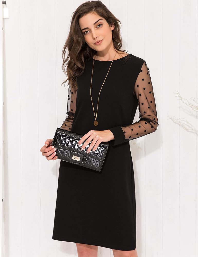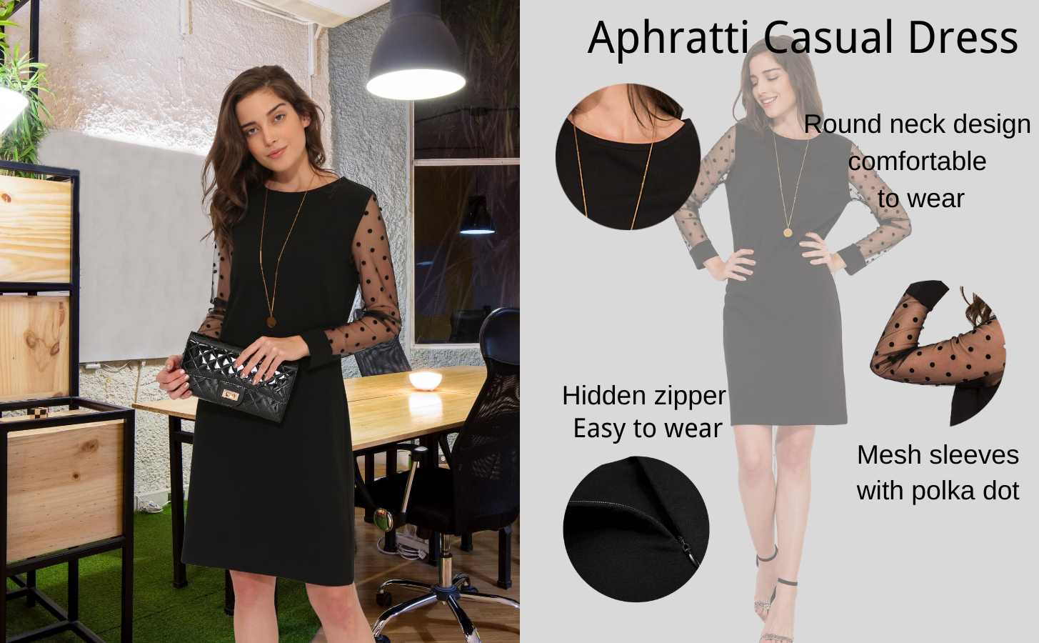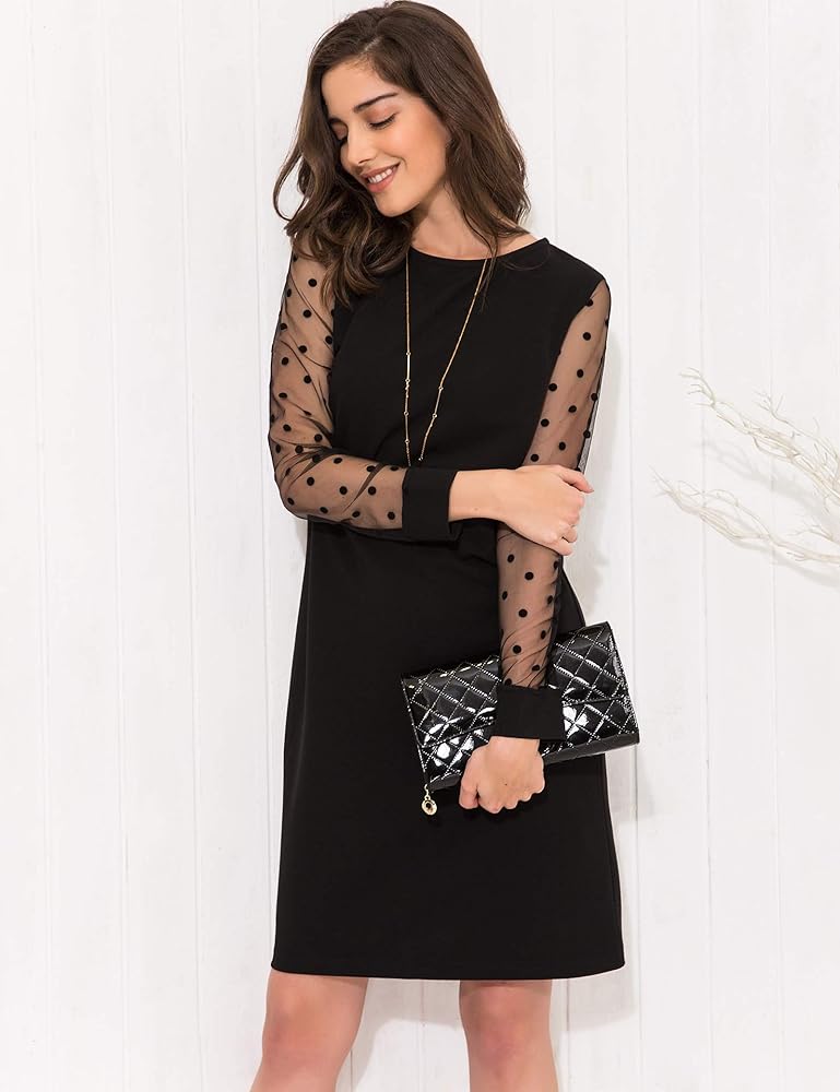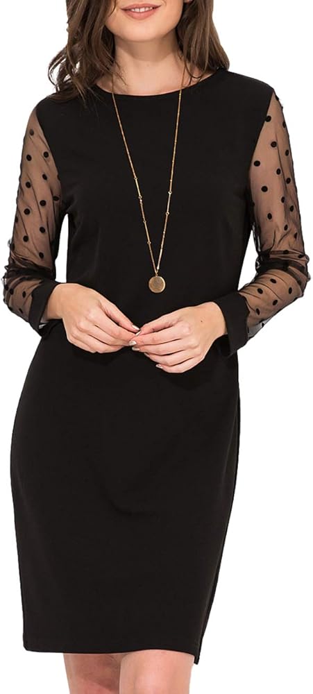 تصميم أنيق: فستان بأكمام شبكية شفافة للنساء كاجوال، رقبة دائرية، شريط عند الأساور، أكمام طويلة، أكمام طويلة، طول الركبة، سحاب خلفي، غير مبطن