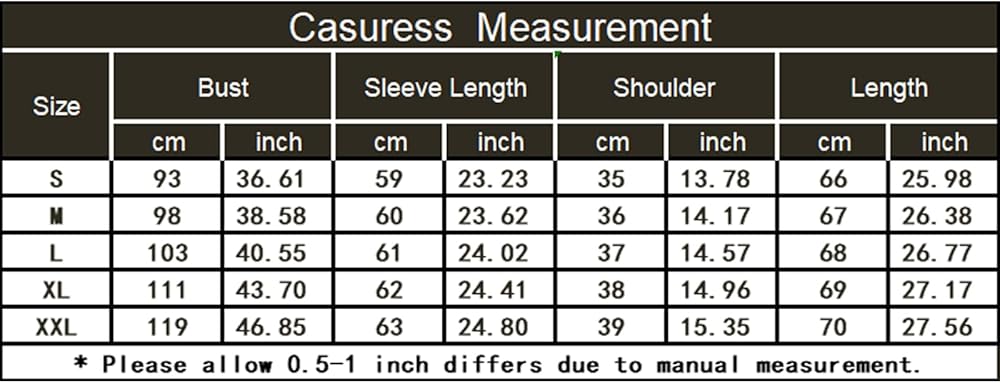• العناية بالملابس: يُغسل يدويًا/في الغسالة بلطف بالماء البارد، ويُعلق ليجف أو يُعلق ليجف، ولا تستخدم المبيضات، ويُكوى على درجة حرارة دافئة إذا لزم الأمر، ويُغسل بلون مشابه. يرجى الرجوع إلى جدول مقاسات CASURESS قبل الطلب (ليس مقاس أمازون).