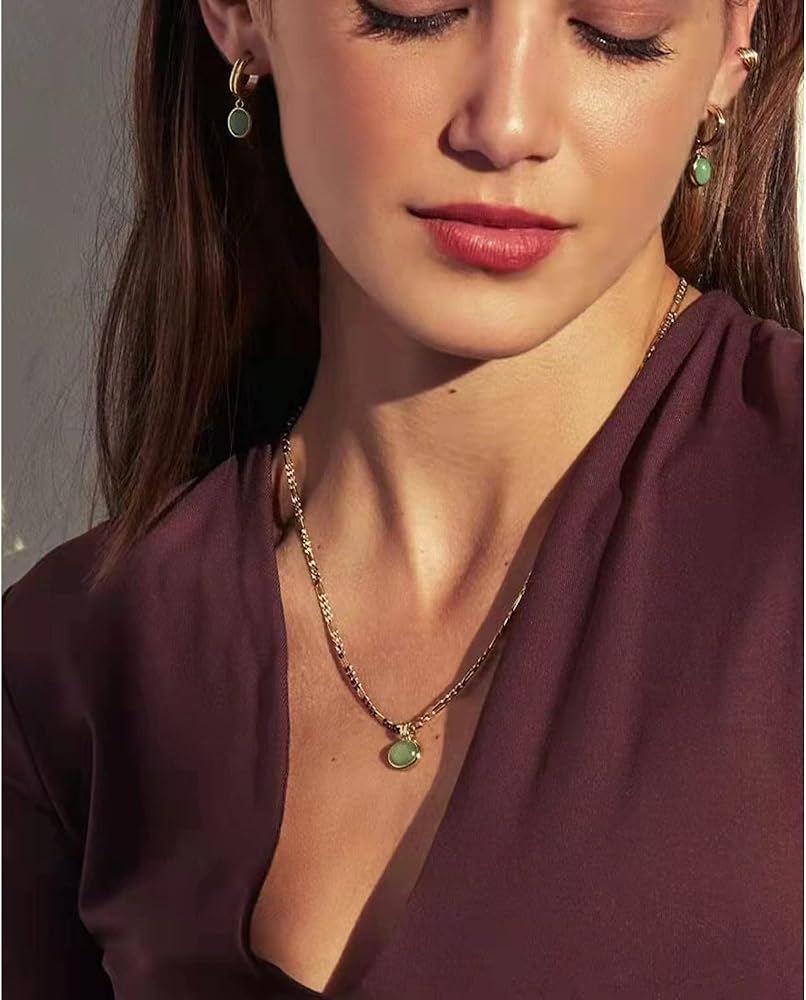 • 【مادة الأقراط المتدلية】 مصنوعة من الفولاذ المقاوم للصدأ عالي الجودة مع حجر أخضر طبيعي، مطلية بالذهب الحقيقي عيار 18 قيراط، خالية من الرصاص، خالية من النيكل ولا تسبب الحساسية، ولا تسبب ضررًا للبشرة الحساسة.