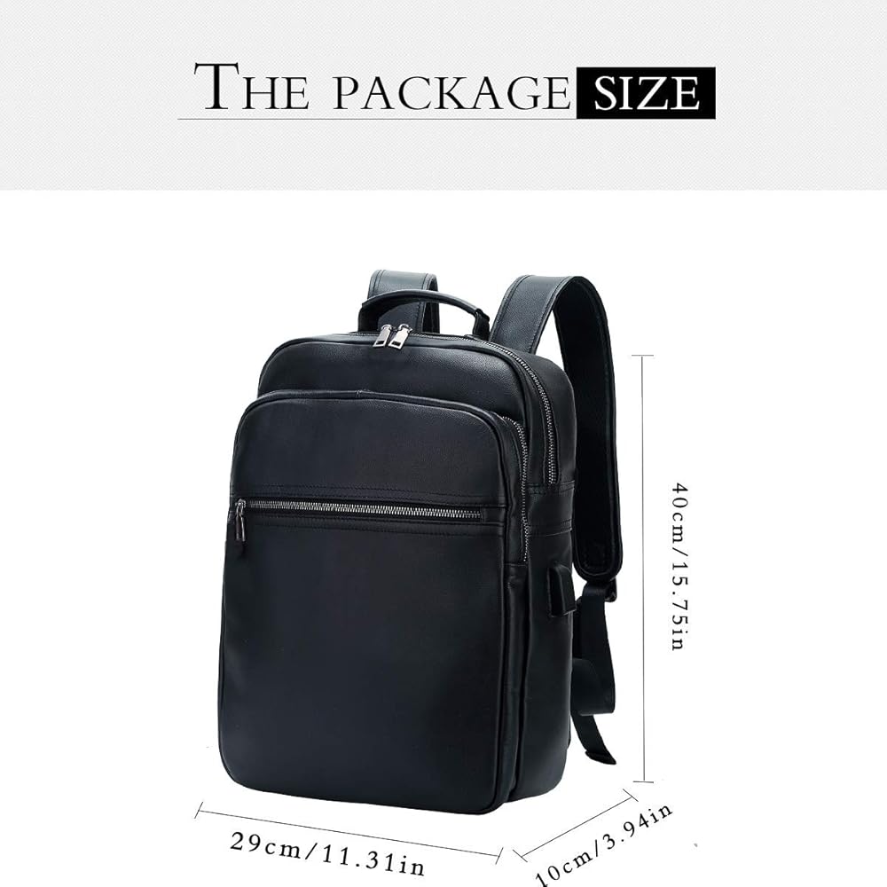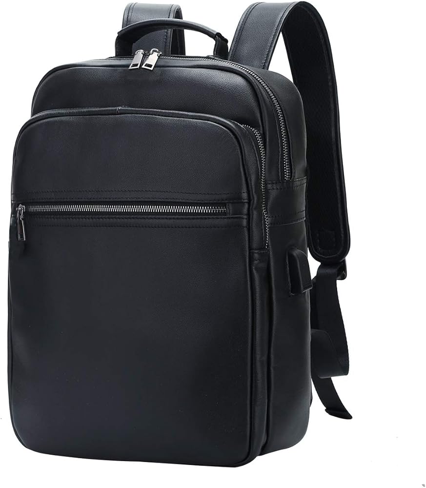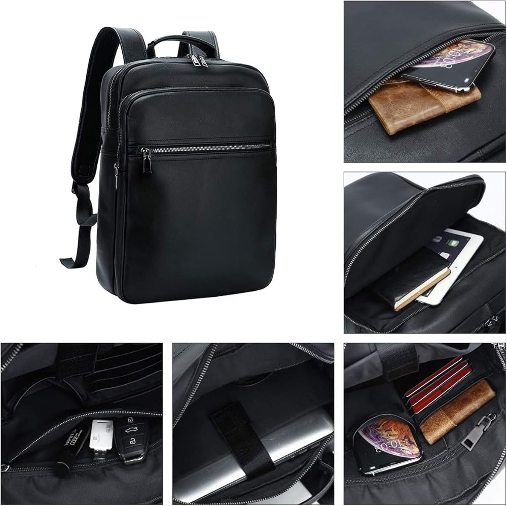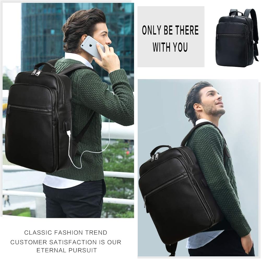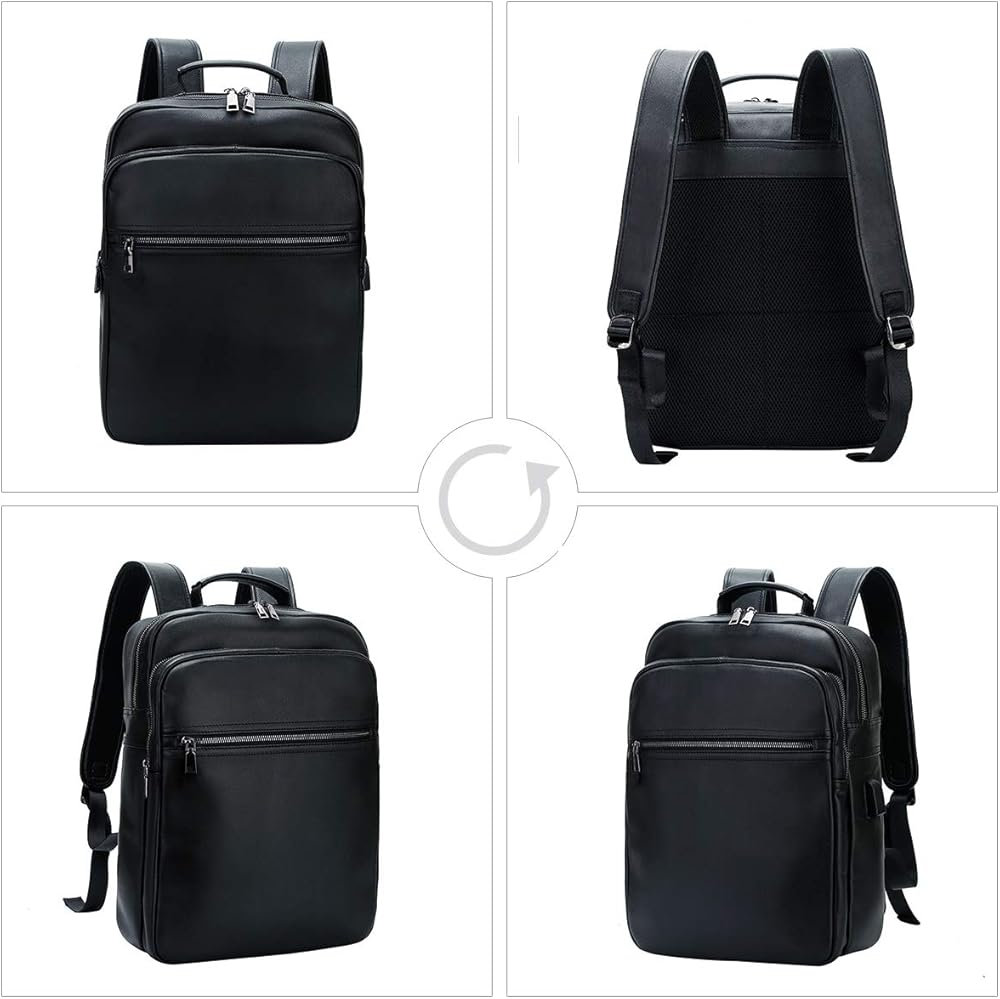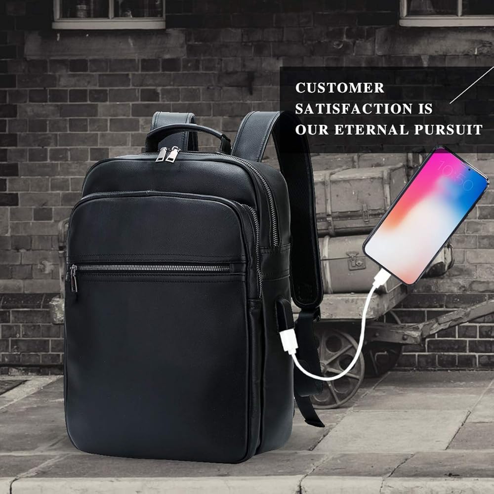 حقيبة ظهر Leathario للرجال من الجلد الطبيعي للكمبيوتر المحمول مقاس 16 بوصة، حقيبة فاخرة ذات سعة كبيرة للأعمال والسفر والسفر طوال الليل وعطلات نهاية الأسبوع (أسود-52)