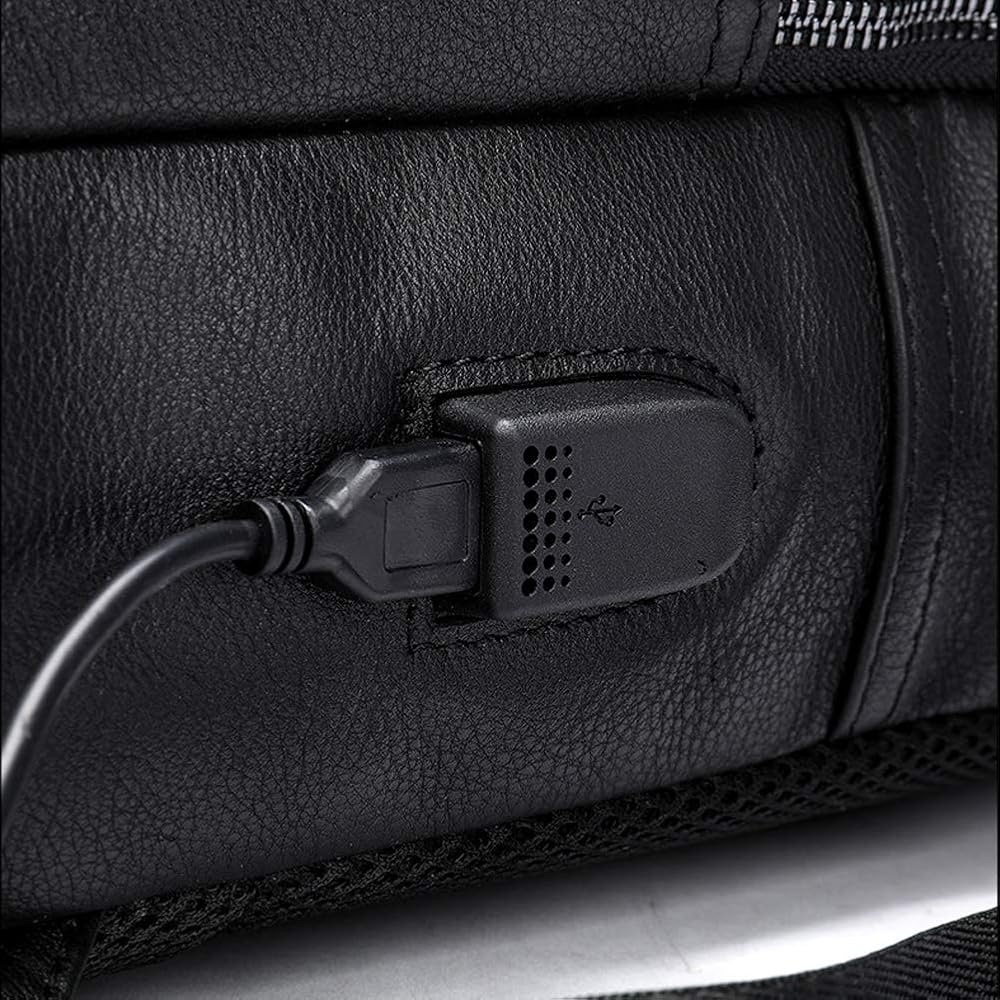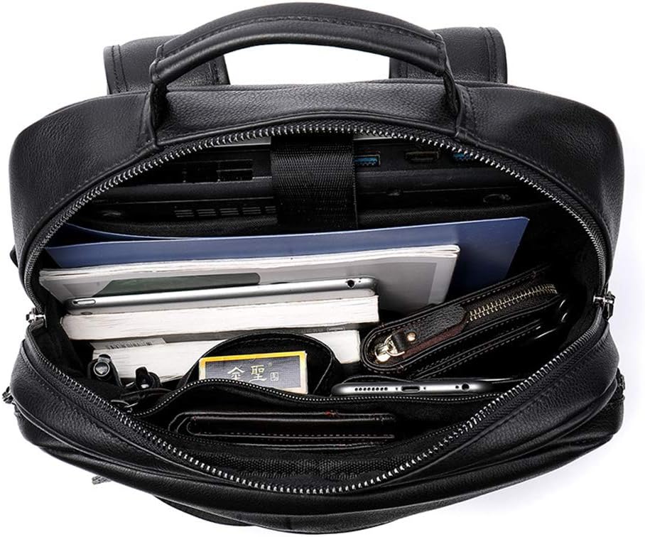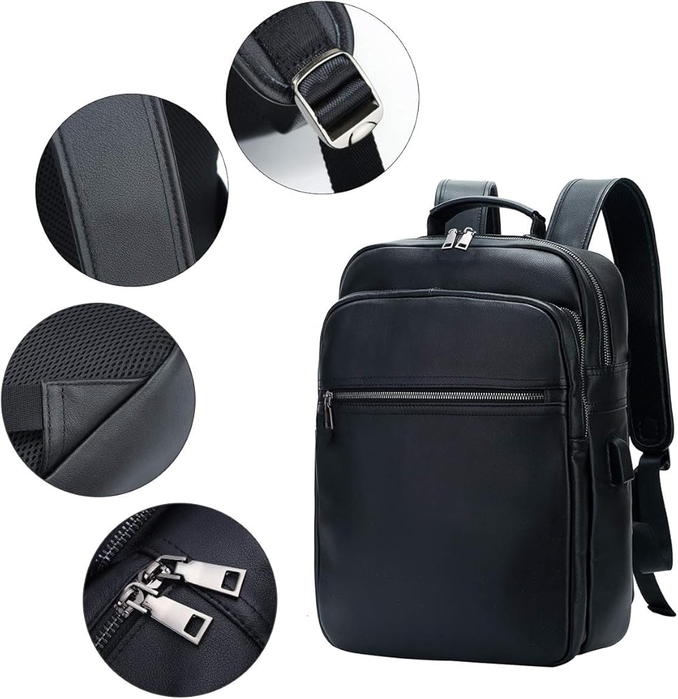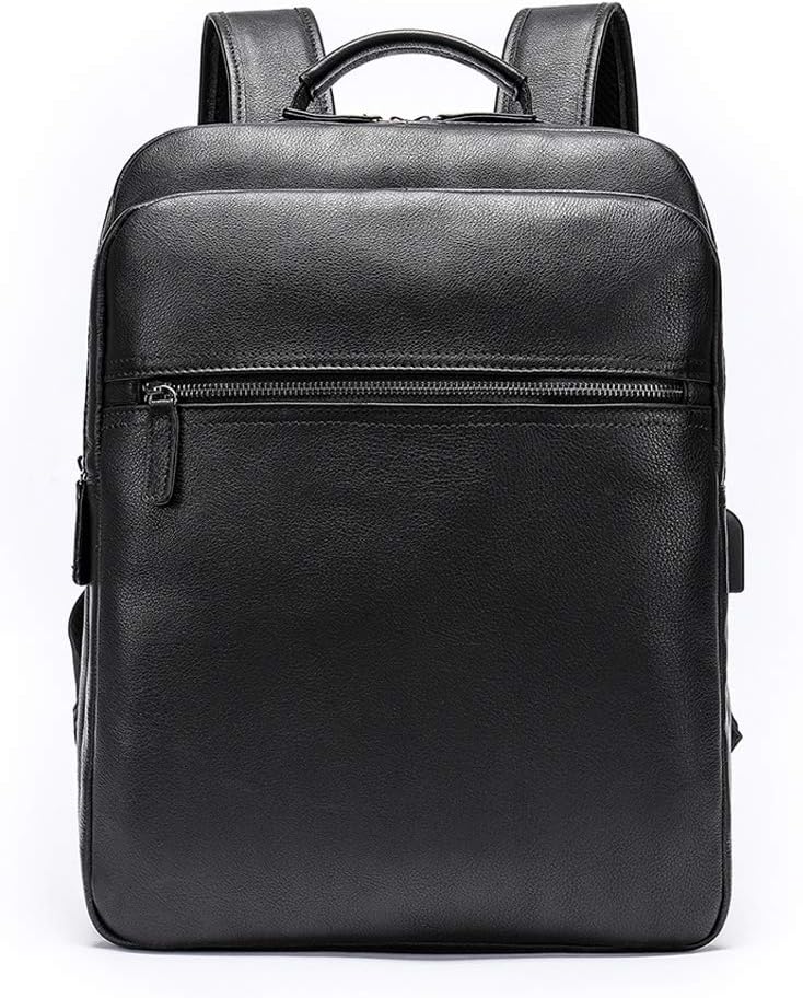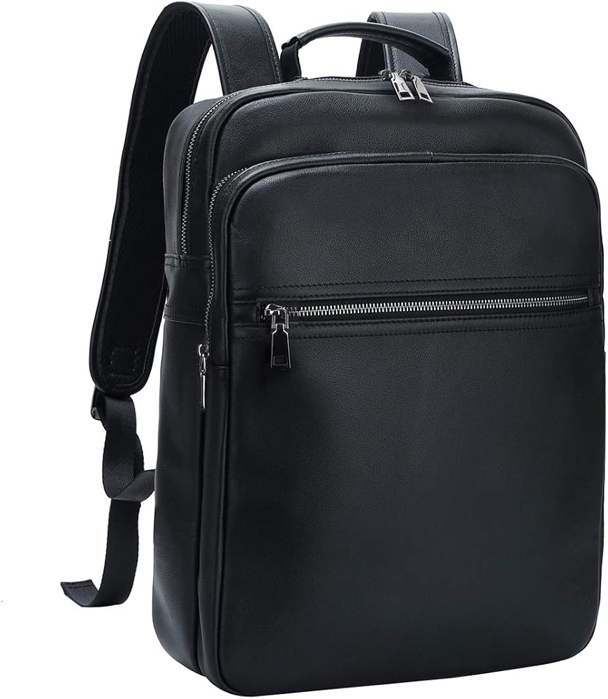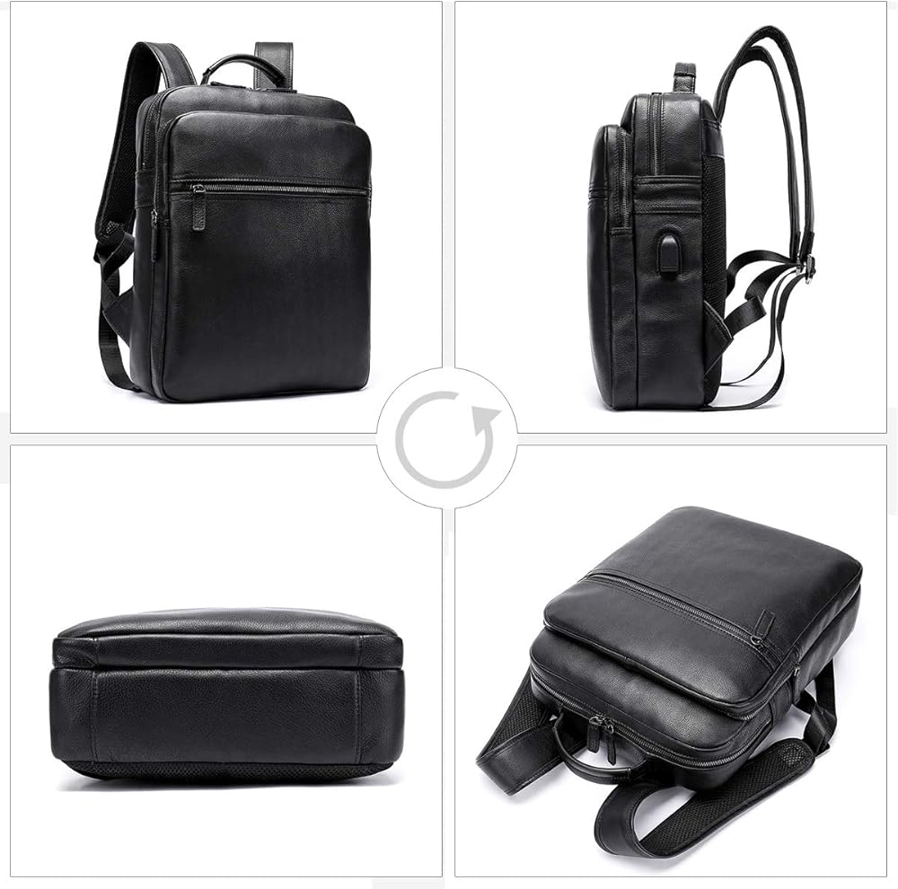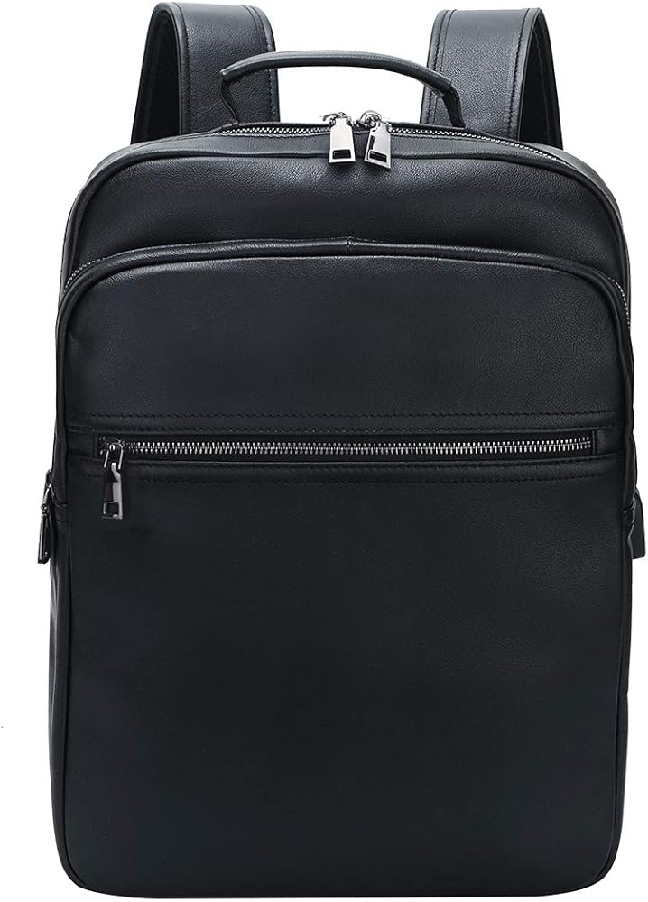 حقيبة ظهر Leathario للرجال من الجلد الطبيعي للكمبيوتر المحمول مقاس 16 بوصة، حقيبة فاخرة ذات سعة كبيرة للأعمال والسفر والسفر طوال الليل وعطلات نهاية الأسبوع (أسود-52)