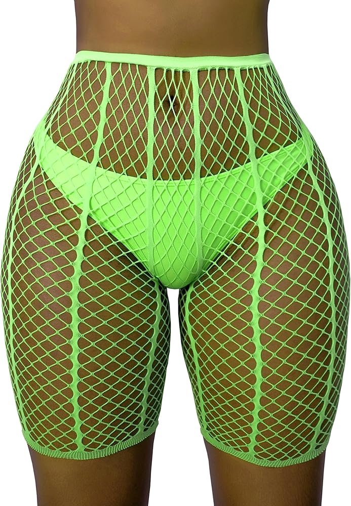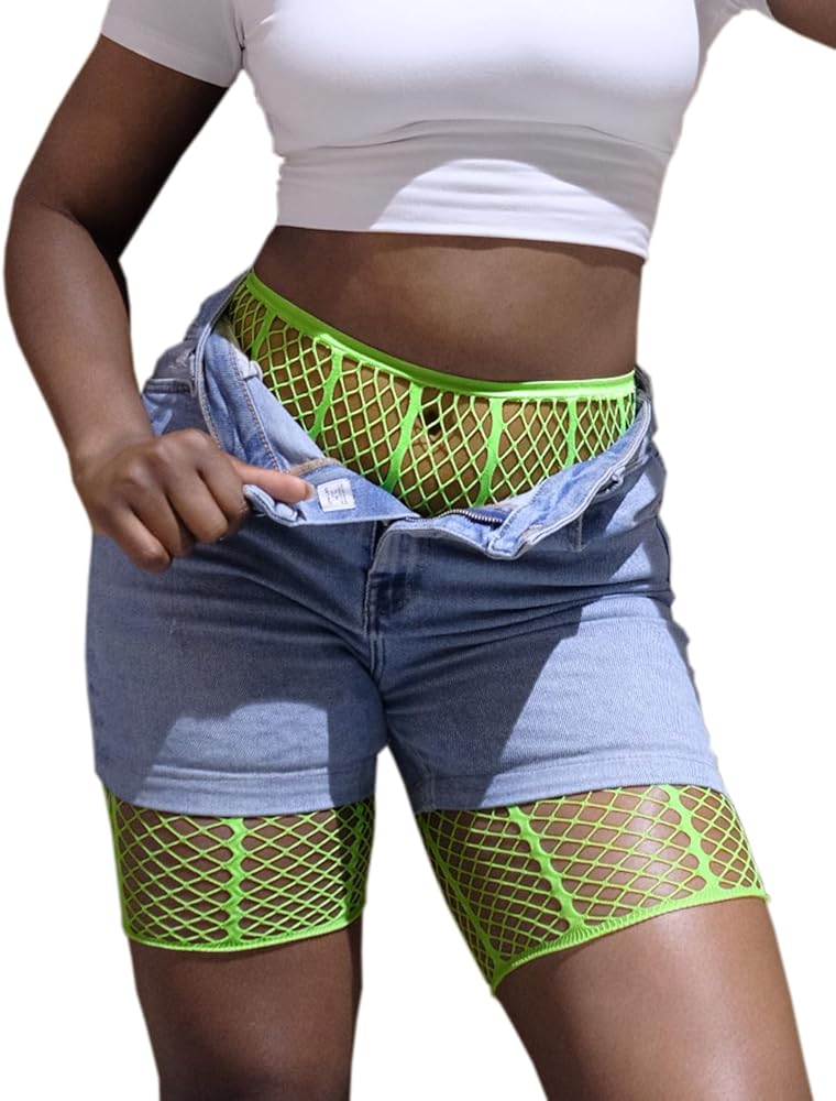 Lunedear المرأة مثير مخطط شبكة صيد السمك السائق السراويل شبكة ملابس السباحة التستر السراويل شير نادي ليلة خارج طماق قصيرة النيون