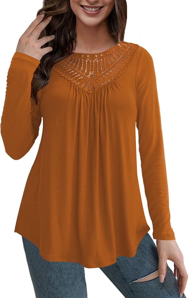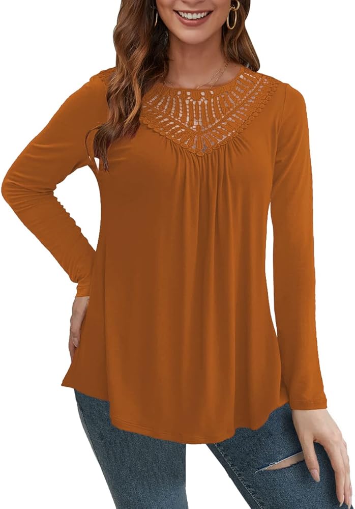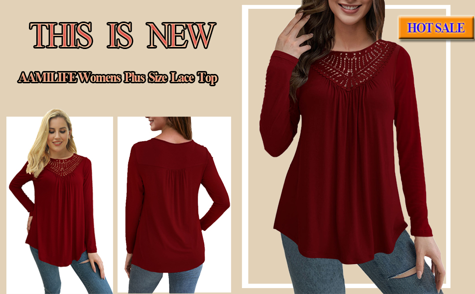 Aamilife Women’s Plus tee Tee Long Sleeve Stirts Lace Lace Tunic Tops Blouses M-4XL