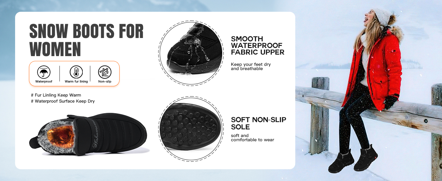 أحذية مقاومة للماء للنساء: أحذية نسائية مقاومة للماء، نعل مقاوم للماء ومقاوم للانزلاق يضمن الثبات والأمان، حتى على الأسطح الزلقة. أحذية ثلج مسطحة، أحذية ثلج شتوية للنساء، أحذية شتوية لطيفة للنساء، حذاء شتوي نسائي، أحذية ثلج واسعة العرض للنساء، أحذية شتوية من الفرو فروي للنساء