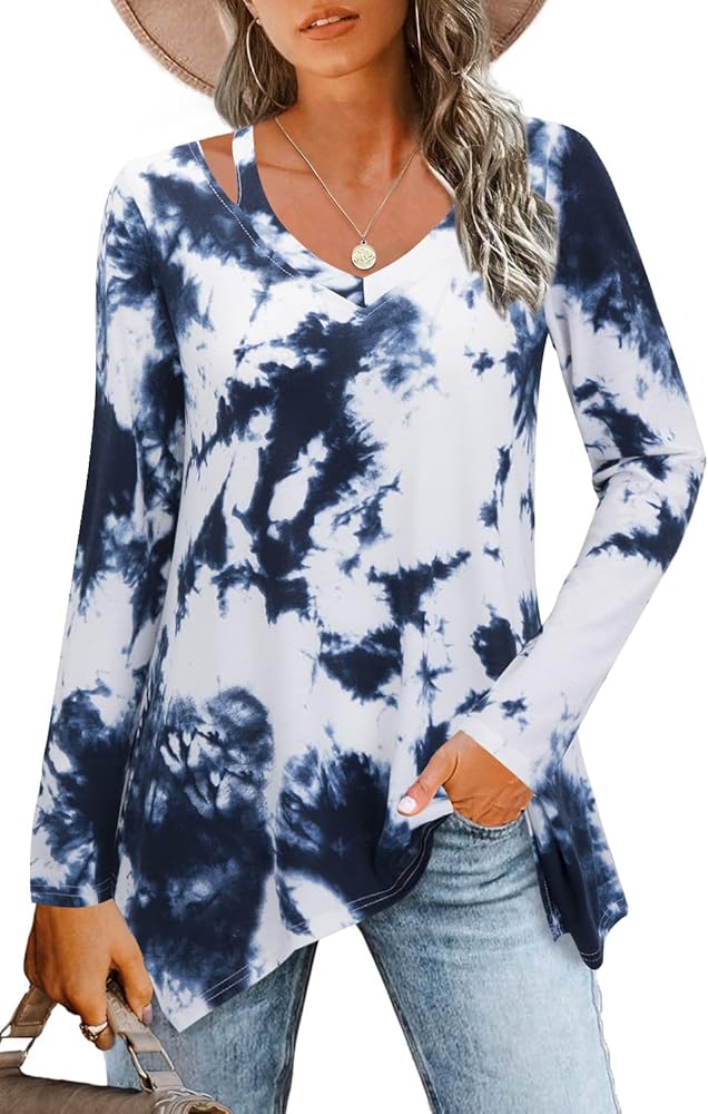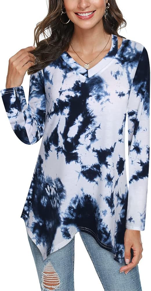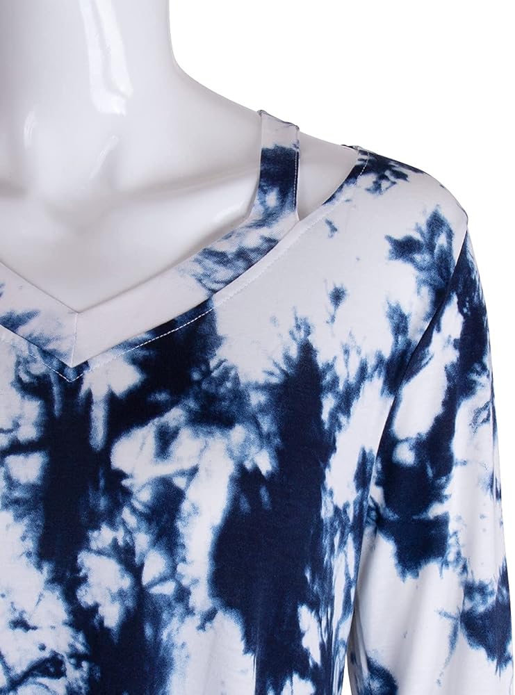 بولوتس قميص تونيك كاجوال منقوش باكمام 3/4 ورقبة على شكل حرف V للنساء