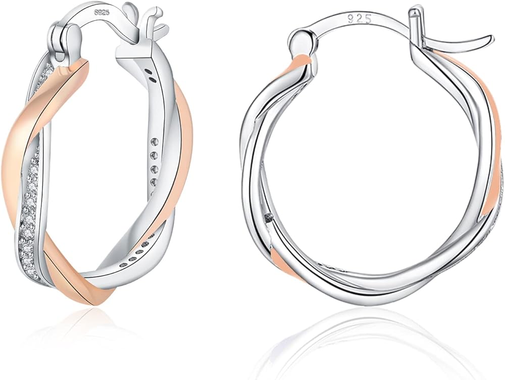 • 💗【تصميم أطواق من الذهب الوردي】هذه الأقراط من الفضة الإسترلينية، بسيطة ولكنها تظهر أناقتك. مزيج من خطين ملتويين متقاطعين، خط واحد من الذهب الأبيض وخط واحد من الذهب الوردي. تصميم فريد للارتداء اليومي.