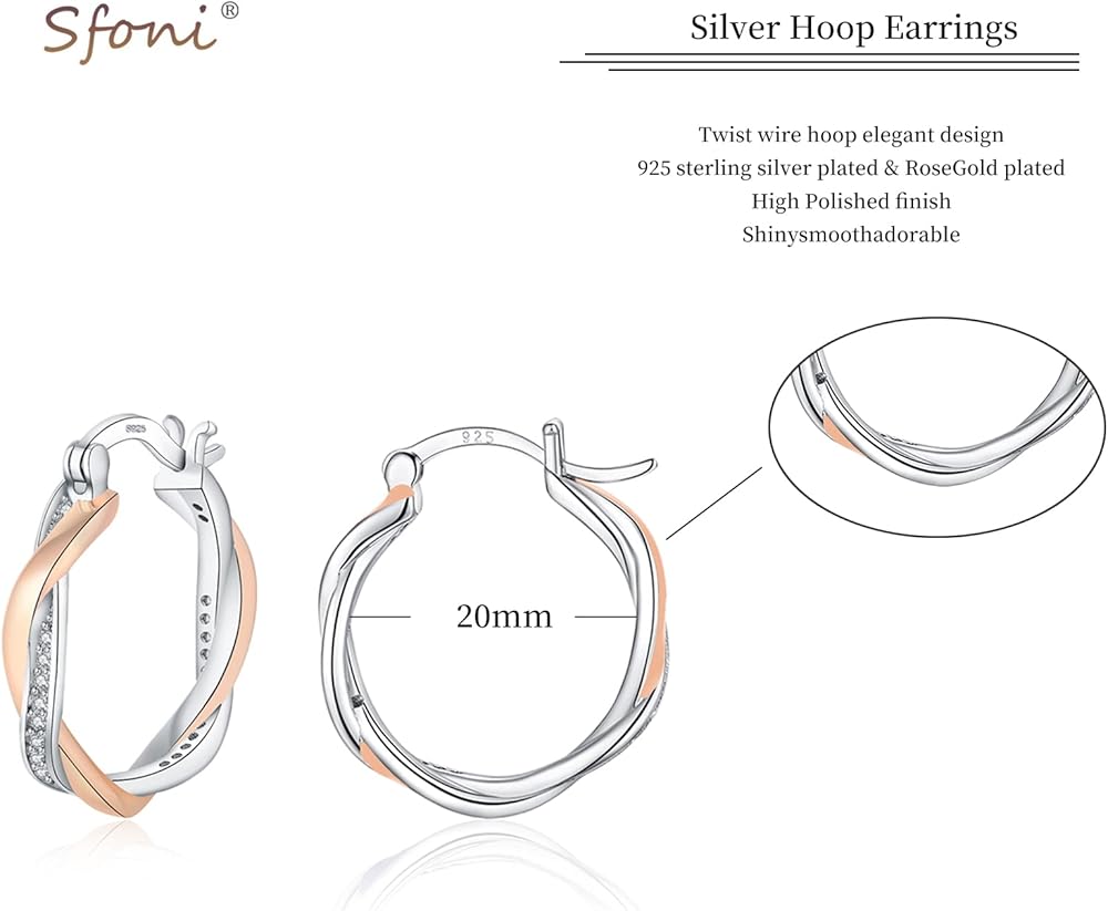 • 💗【مادة آمنة لأقراط الذهب الوردي】الأقراط الطوقية الملفوفة مصنوعة من عمود من الفضة الإسترلينية عيار 925، فهي تخلق المادة المثالية لصنع مجوهرات جميلة. الأطواق الفضية المضادة للحساسية خالية من النيكل والرصاص والكادميوم. حلق دائري للنساء مع مشبك قوي ومتين، مريح في الارتداء والخلع. تم تجهيز تشيكوسلوفاكيا المذهلة بـ 4 مخالب لضمان عدم سقوطها بسهولة.