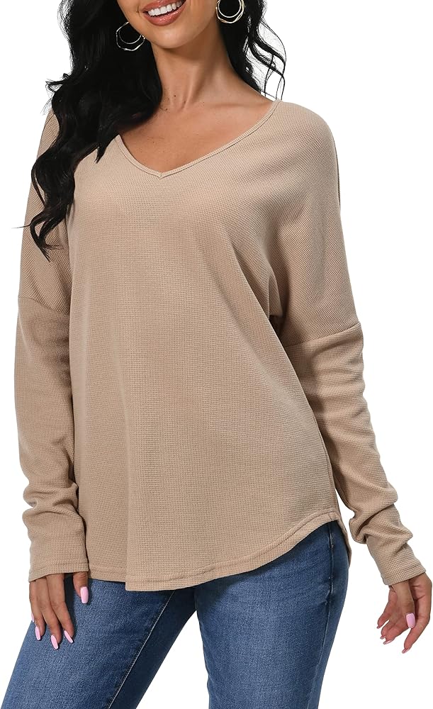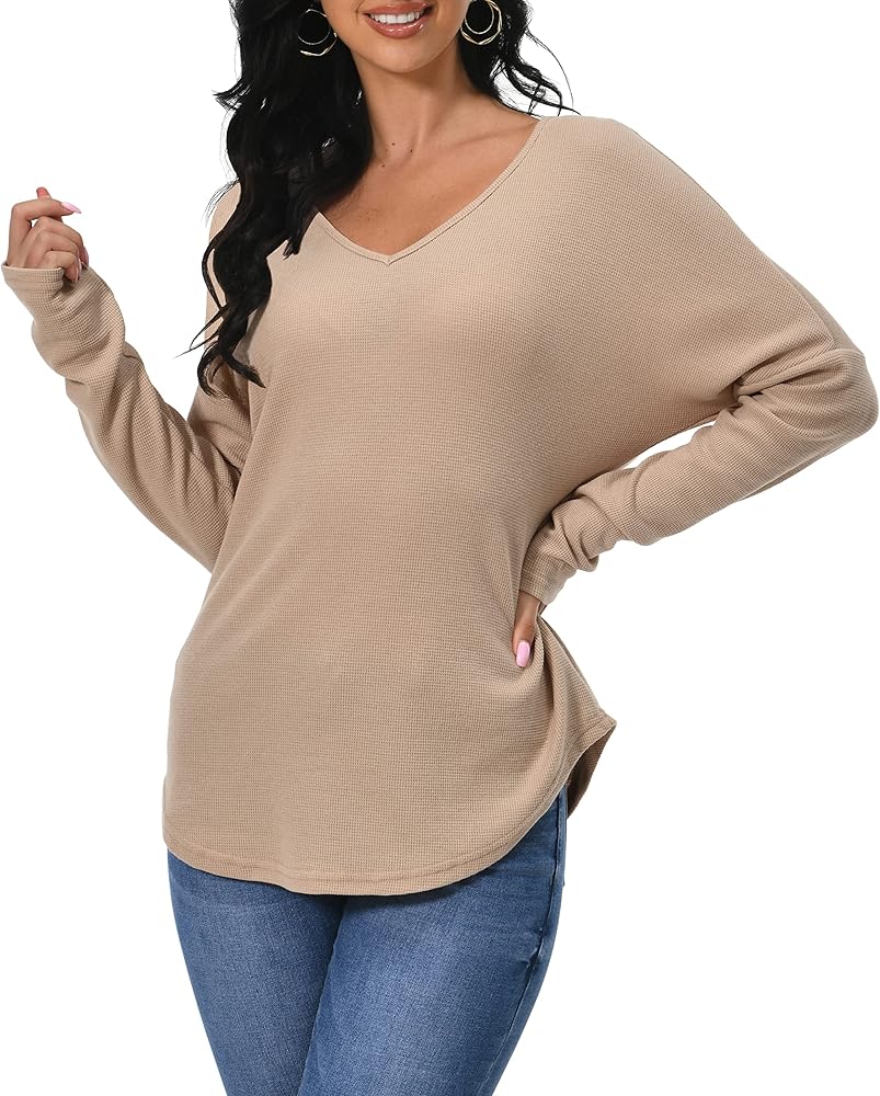 أكمام طويلة ورقبة على شكل حرف V، خامة ناعمة وجيدة التهوية للسيدات، قمصان وبلوزات بنمط بيبي دول للخريف.