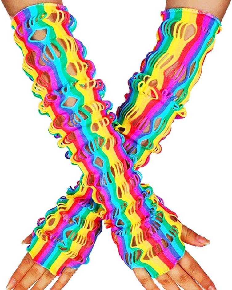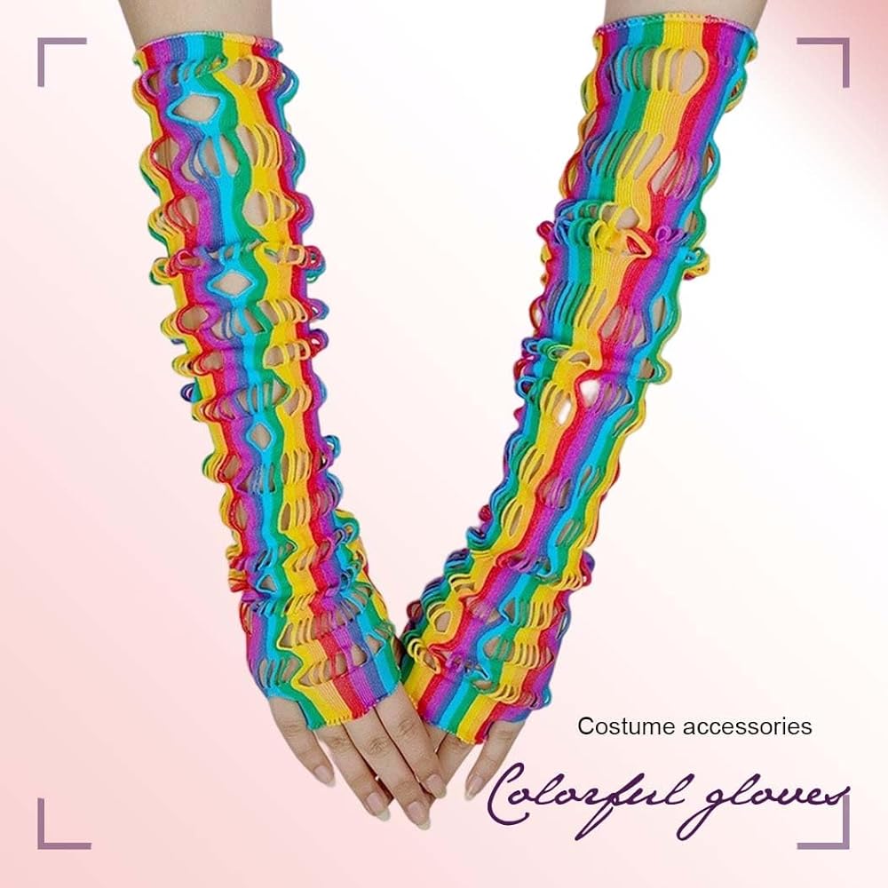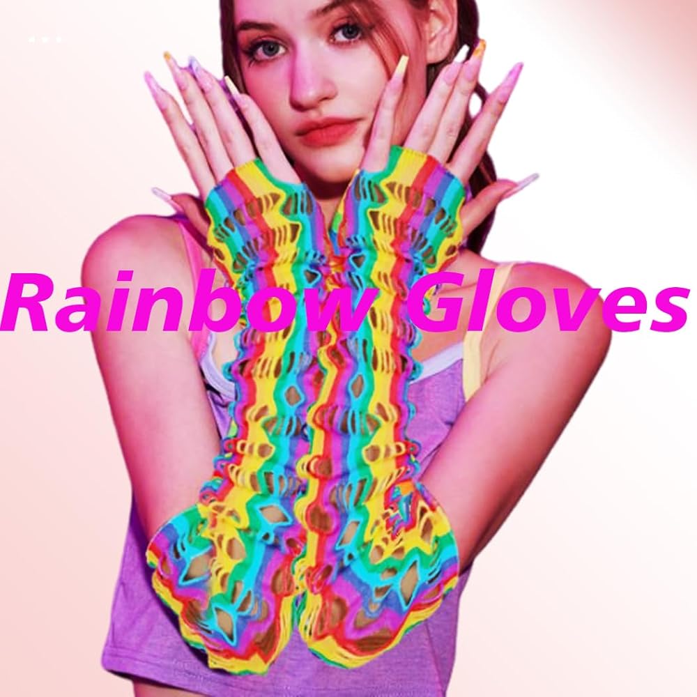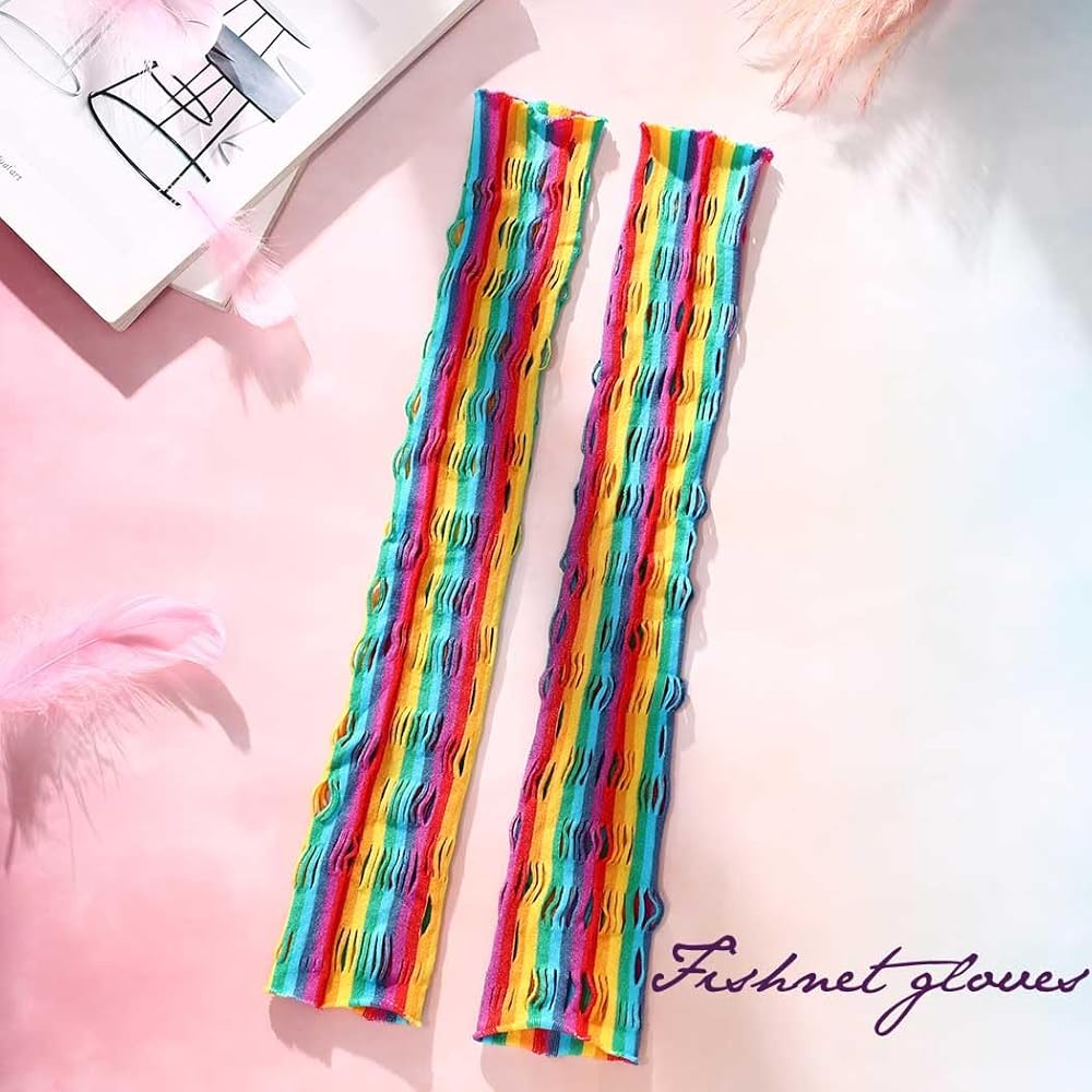 قفازات شبكة صيد السمك بألوان قوس قزح بتصميم فريد ونمط قوس قزح، تجعل ملابسك أكثر بريقًا وعصرية.