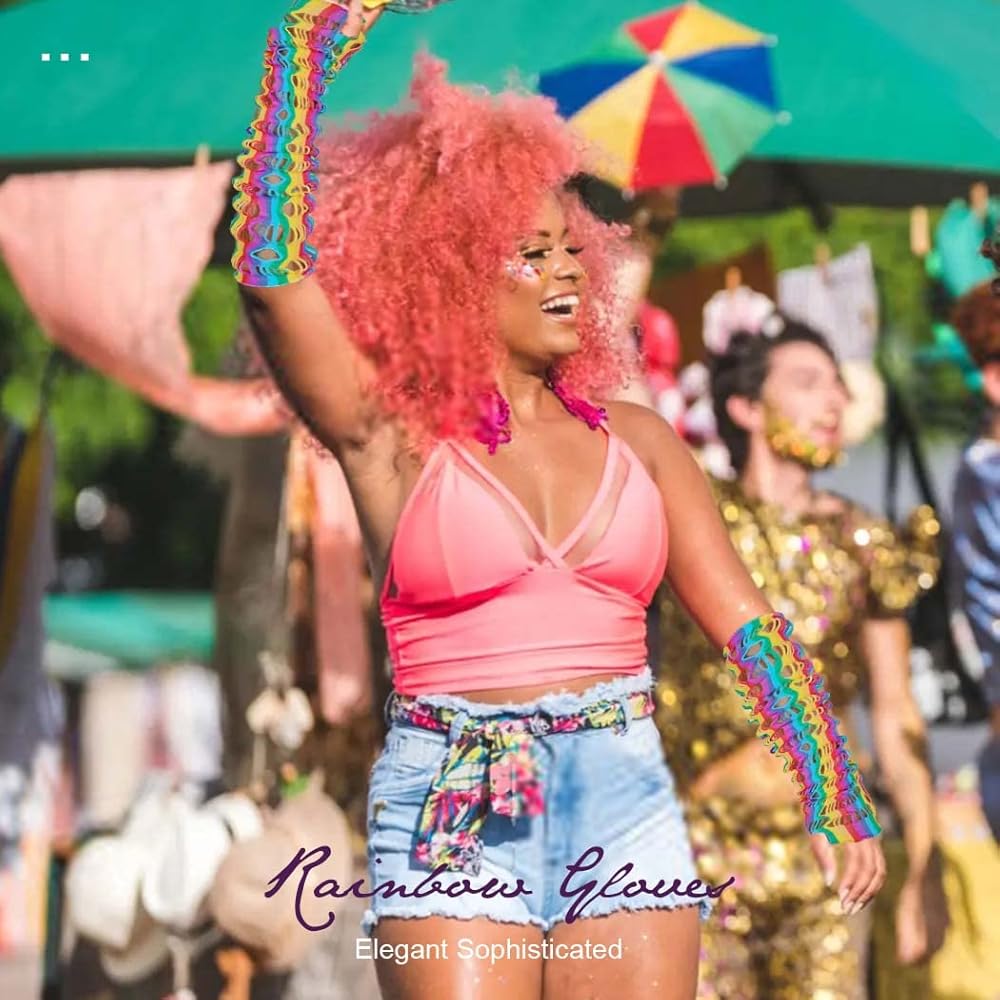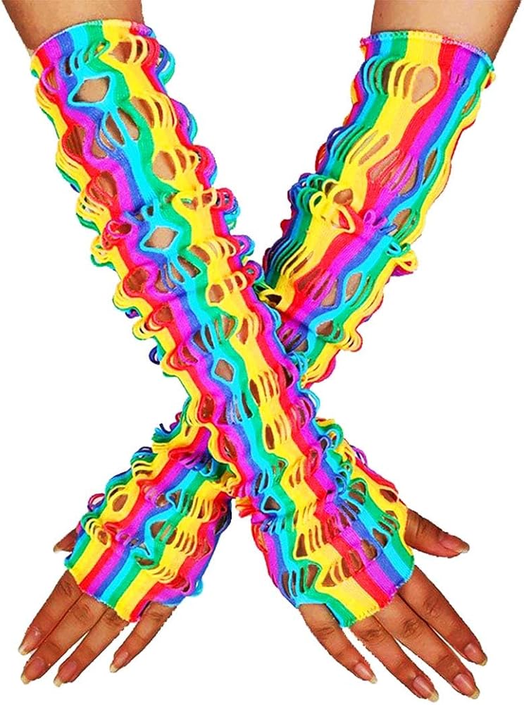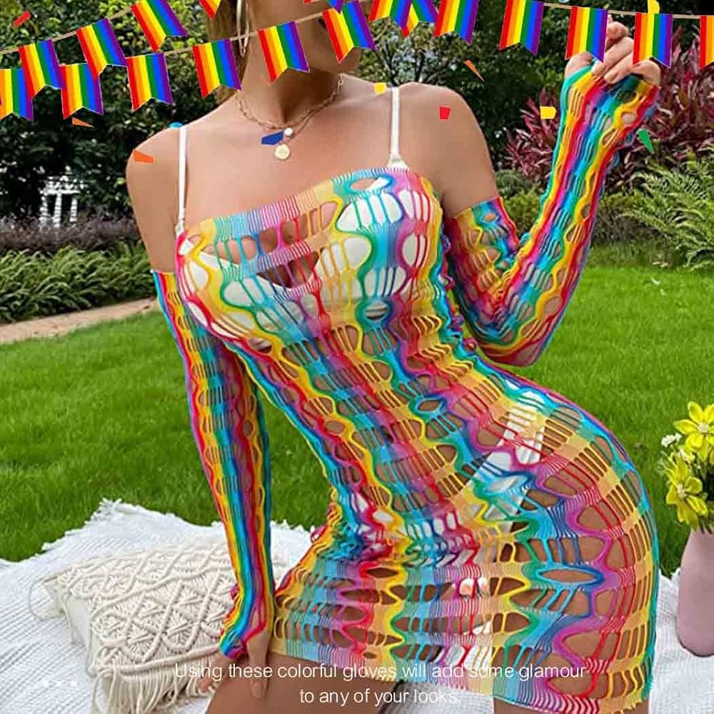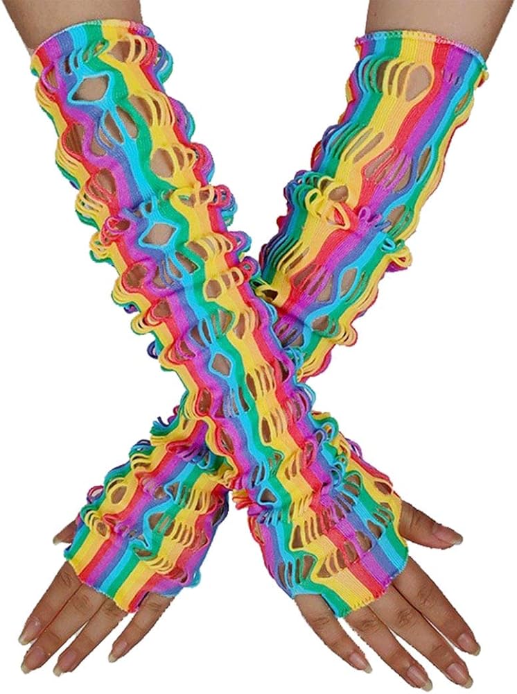قفازات شبكة صيد السمك بألوان قوس قزح بتصميم فريد ونمط قوس قزح، تجعل ملابسك أكثر بريقًا وعصرية.
