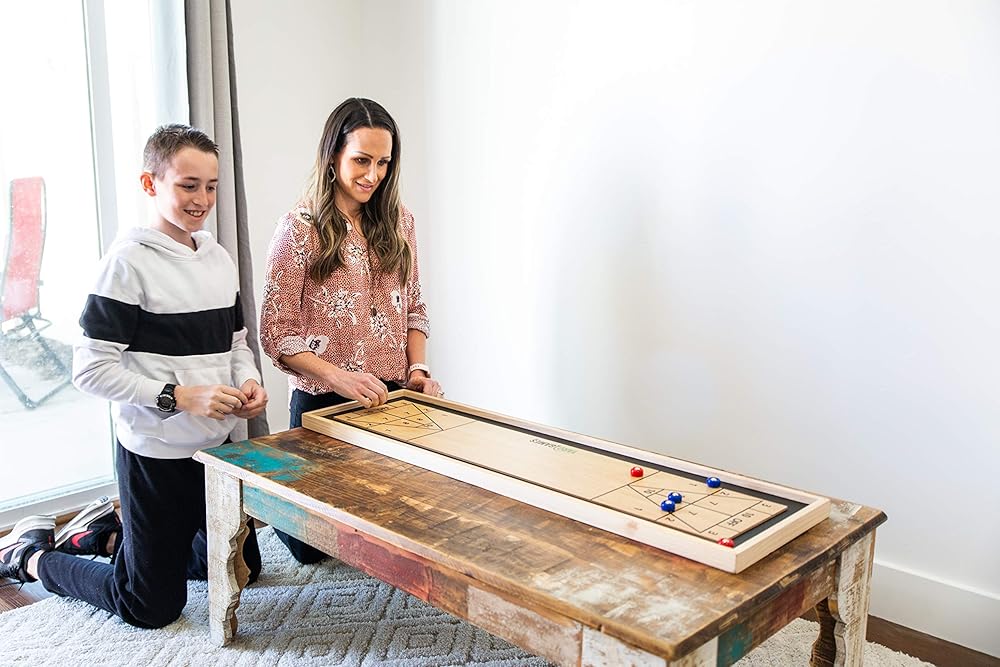 العب لعبة التمويج الأولمبية في راحة منزلك مع هذه المجموعة المكونة من ألواح تمويج وتمويج سطح الطاولة. المجموعة الكاملة هي 114.3 سم طولًا × 33.02 سم عرضًا وهي مصنوعة من خشب الصنوبر الصلب ومطبوعة بخطوط حادة بالأشعة فوق البنفسجية على كلا الجانبين. يتضمن تعليمات لكل من اللعبة. العب سبورة شوفليبورد الإنجليزية واللوح التقليدي على أحد الجانبين واقلبها لاختبار مهاراتك في التمويج.