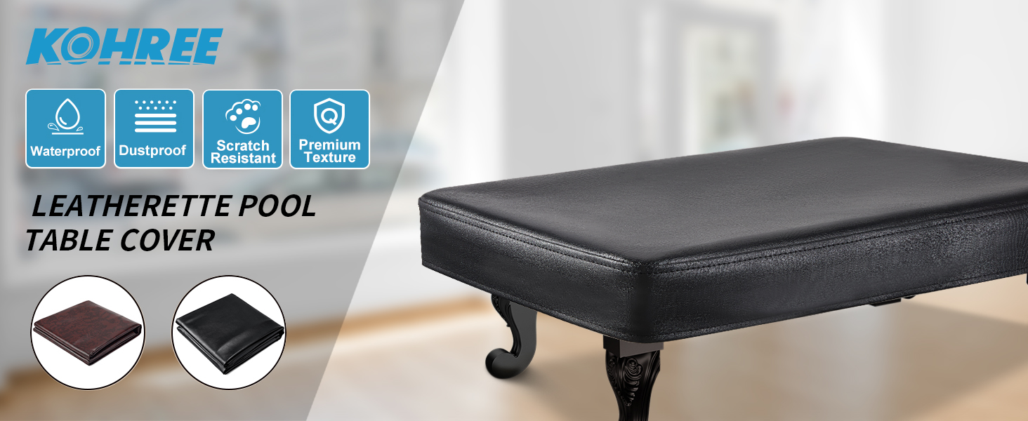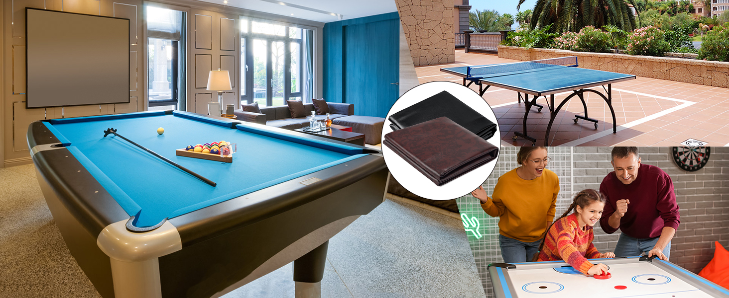 【غطاء طاولة حمام عالي التحمل】مصنوع من جلد عالي الجودة، غطاء طاولة البلياردو المقاوم للماء هذا متين وقوي وصديق للبيئة لحماية طاولة حمام السباحة الخاصة بك من خدوش الحيوانات والدموع والغبار والسوائل المنسكبة وغيرها من الأضرار الخارجية المحتملة.