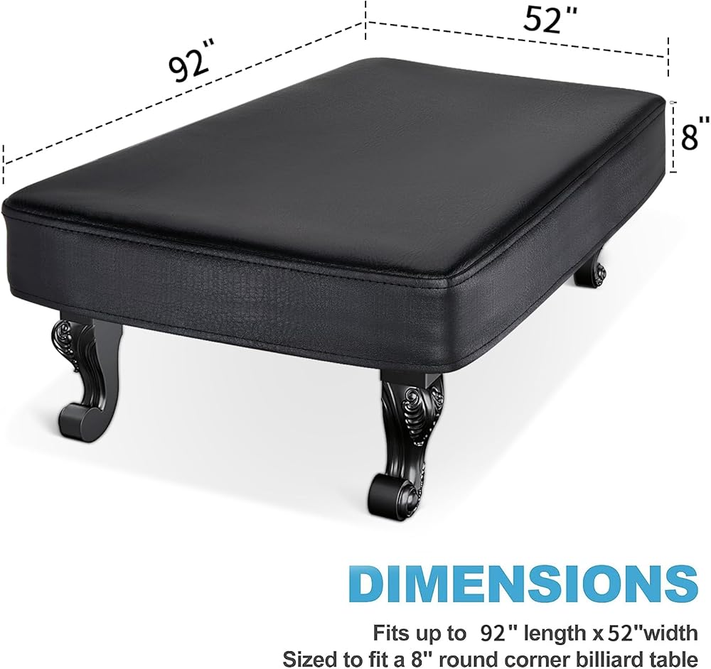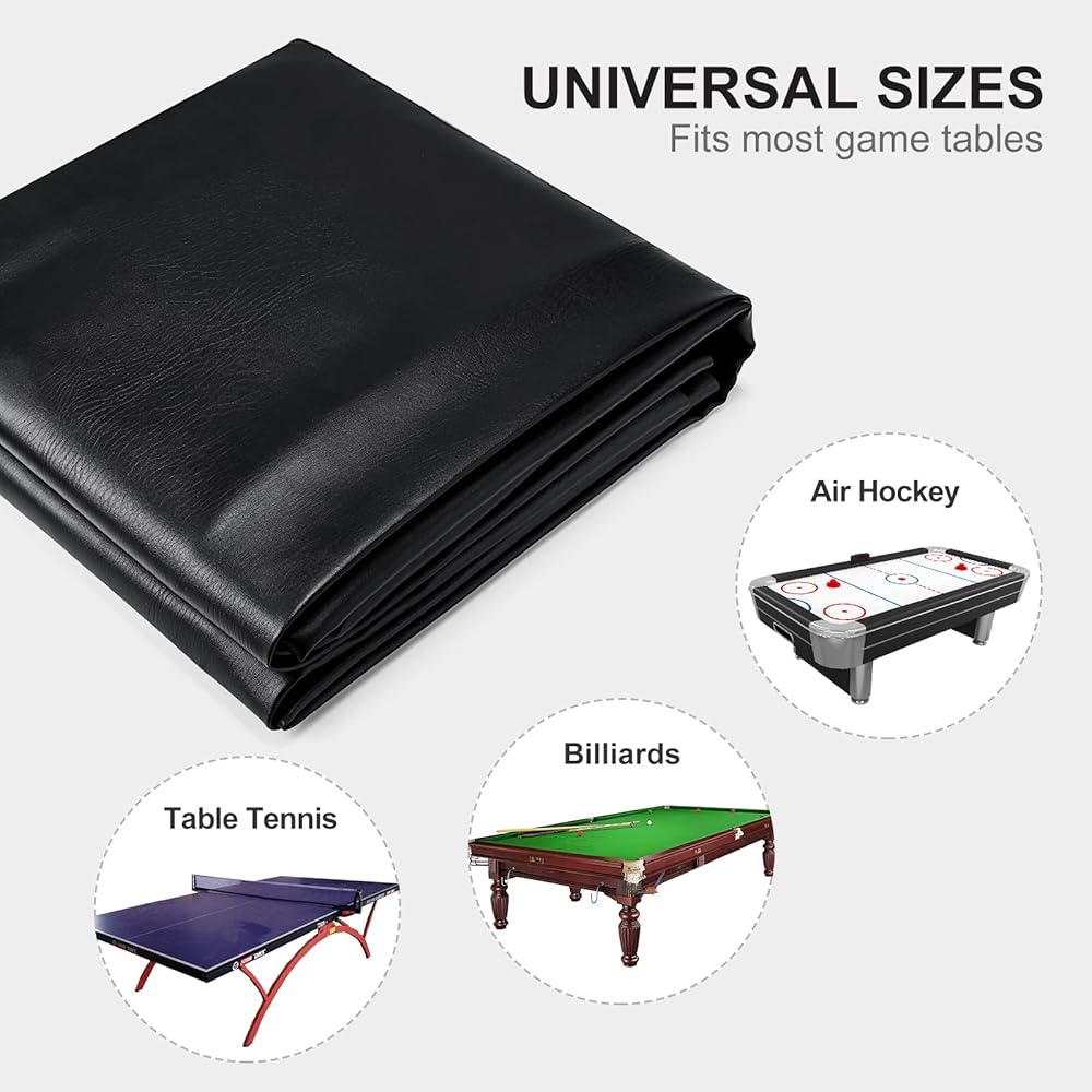غطاء بطول 7 أقدام يناسب هذا الغطاء مقاس 92 بوصة × 52 بوصة × 8 بوصة (الطول × العرض × الارتفاع) معظم الطاولات التي يبلغ طولها 7 أقدام مثل طاولات البلياردو وطاولات الهوكي الهوائية، وهو مناسب للاستخدام الخاص مثل الحانات ومنزلك.