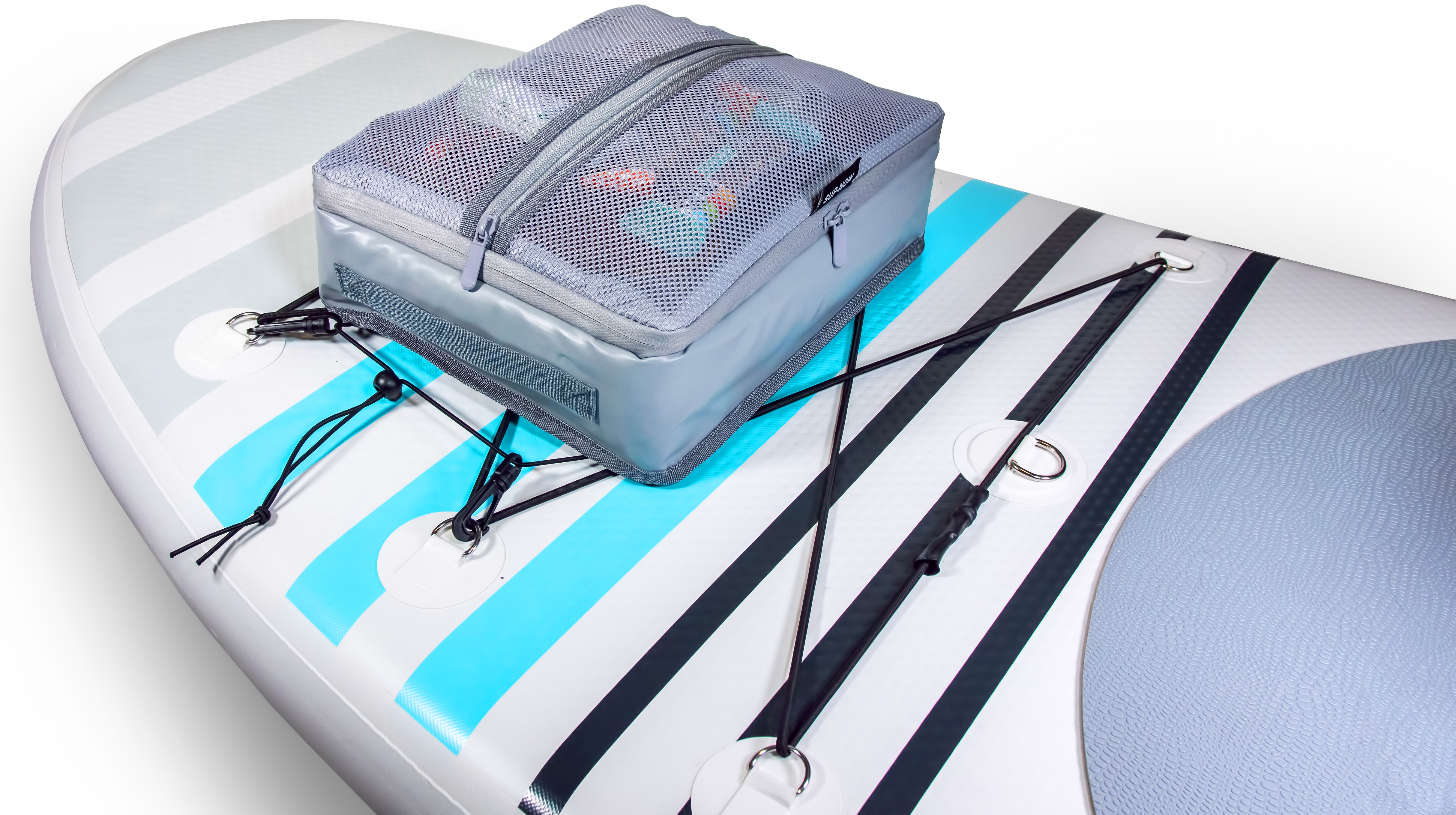 With the genuine SUP-Now Paddleboard Cooler DELUXE Edition with Waterproof Insert, you can easily keep food and beverages ice cold and also carry necessities such as your phone, keys, water bottles, sunscreen, snacks, sandals and more on your paddleboard. This Deluxe Cooler version comes with a free waterproof insert! Sometimes you need to take your keys or your phone with you on the board. Well, this is no longer a problem. You are even able to use your phone while it is in the waterproof insert, which is great for taking pictures while out on the water. We designed this Deluxe Cooler to be as light and aerodynamic as possible. The Cooler weighs less than 1lbs.