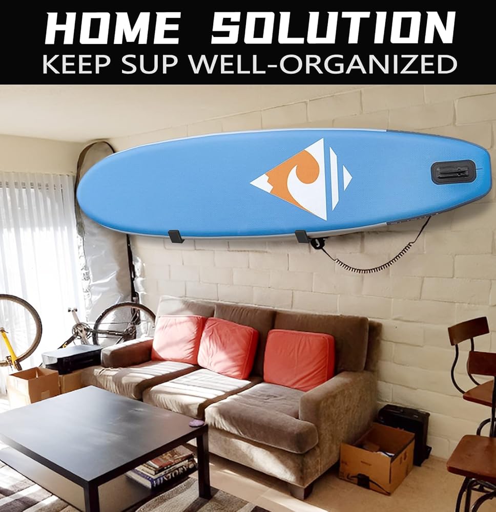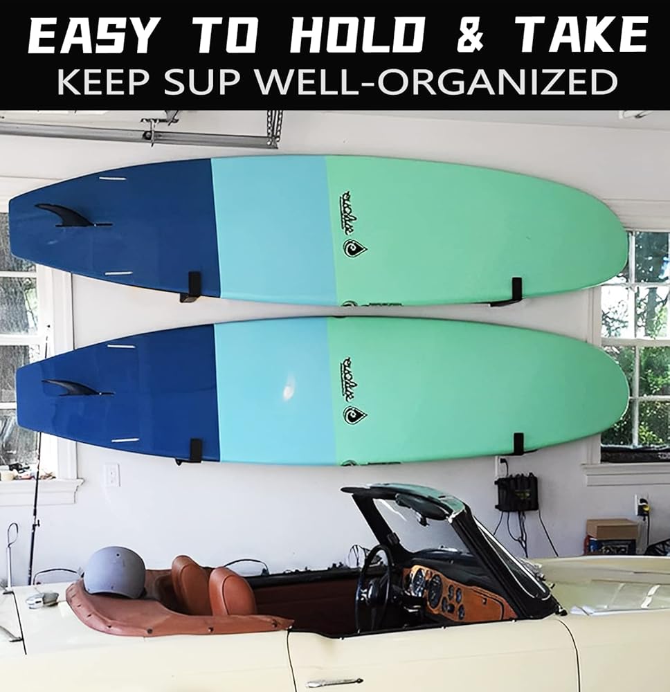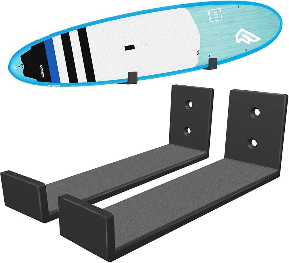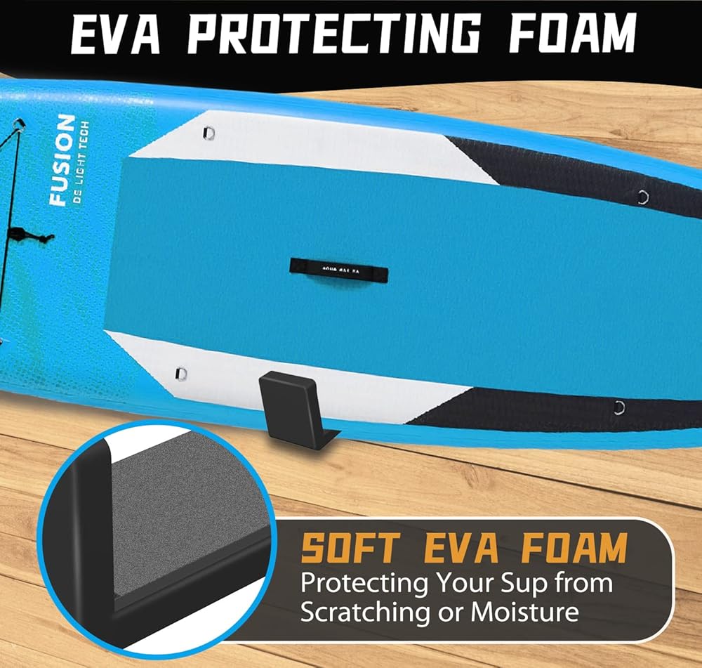 Soft EVA Padding SUPs are very important for outdoor players and need to be preserved carefully. SUP users don't want to check the scratching parts on their buddies. The Sup Rack with a very simple design but its functions will be beyond your expectation - made of a complete sturdy iron plate and inside hooks with soft EVA padding to prevent your sup from scratching, slipping, and moisture climate. Just purchase the hooks and give your guns a home to stay in.