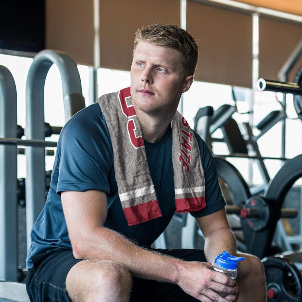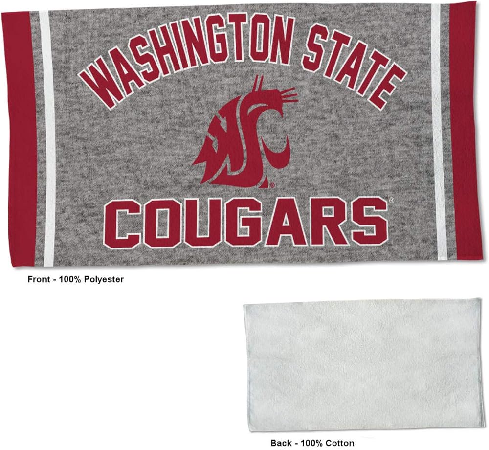This Item measures 22" x 42" in size, has Double-Stitched Perimeter Stitching, is made of thick 100% Polyester on the Front and 100% Cotton on the Back, and has Dye Sublimation logos and insignias, as shown. These sweatshirt style soft towels are machine washable and dryer safe and each Towel is Officially Licensed and Team, College, or University Approved approved.