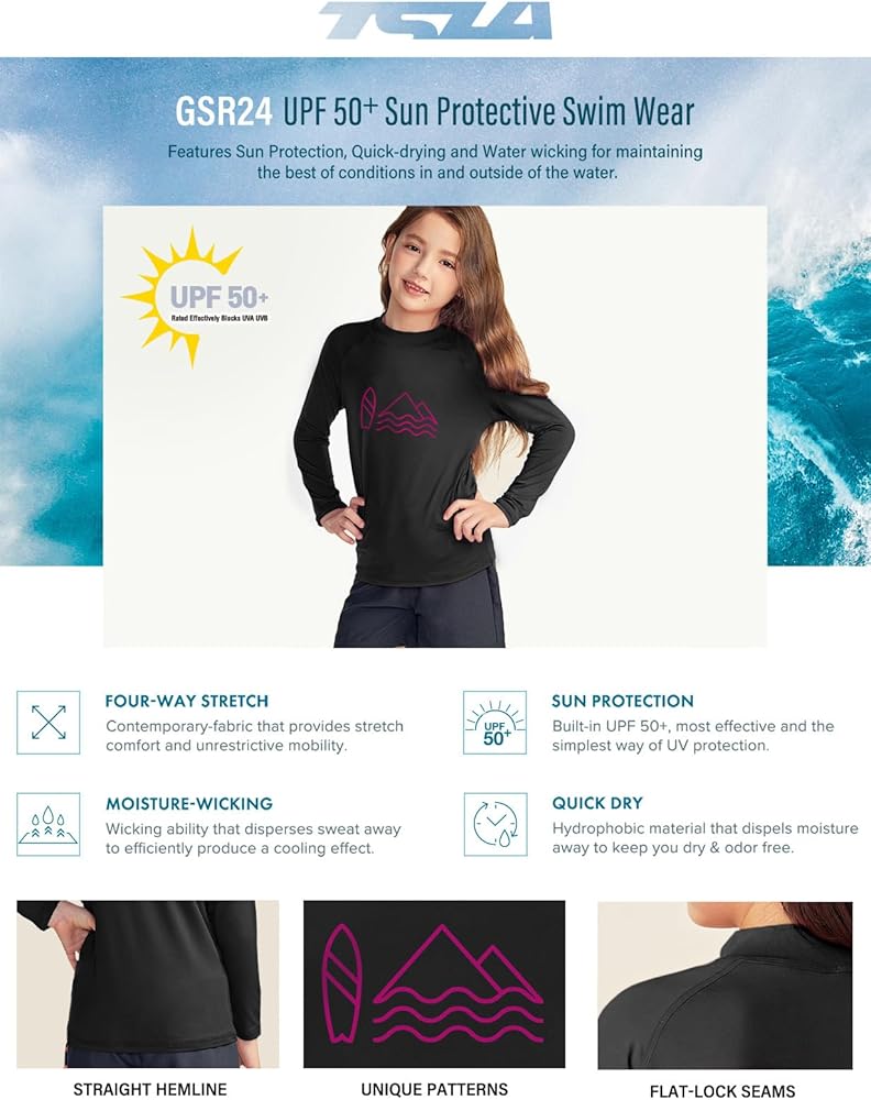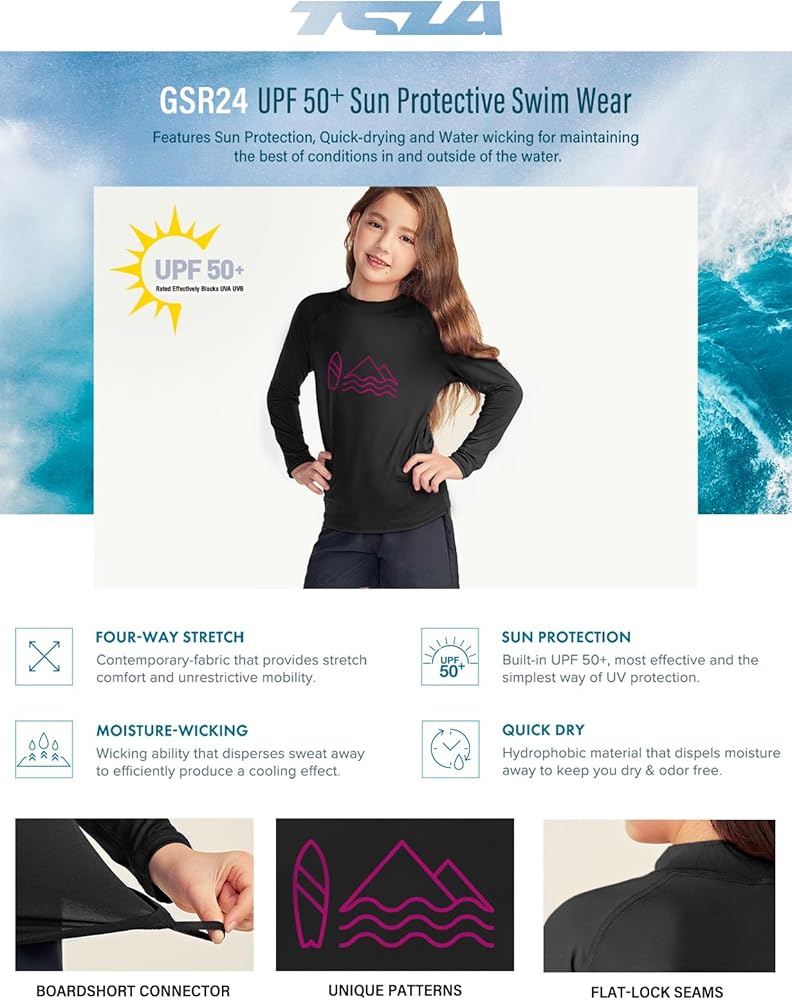 - سلسلة Rashguard الأصلية للأطفال من TSLA مصممة خصيصًا للرياضات المائية وركوب الأمواج.