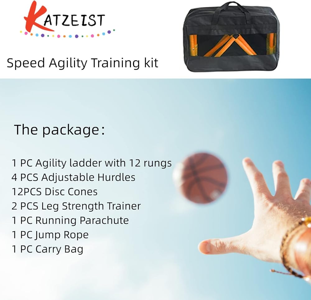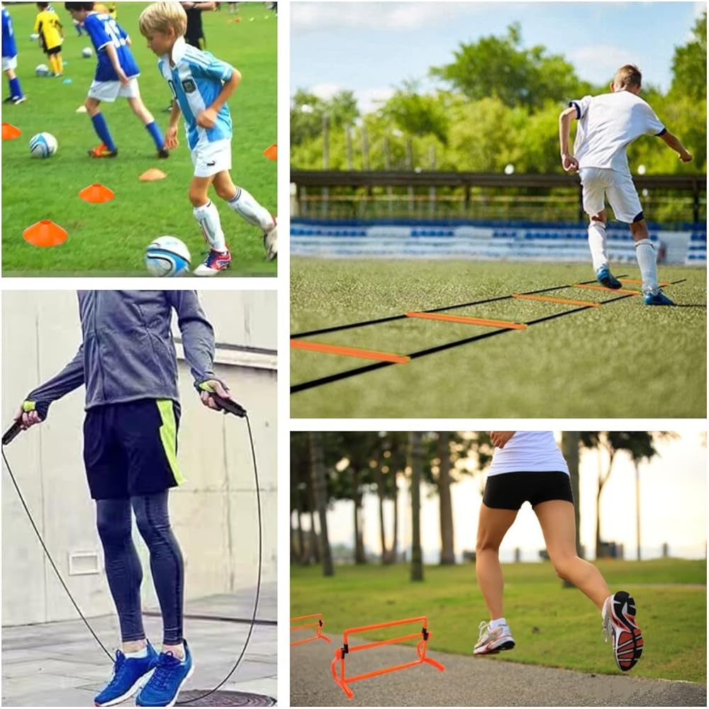 تحسين السرعة والمهارات: يمكن لمجموعة التدريب على الرشاقة الرياضية هذه أن تلبي احتياجات التدريب المختلفة، وتحسن سرعتك وخفة الحركة والتركيز والطاقة وقوة الساق وبناء القوة العامة. قم بتخصيص إعداد التدريب الخاص بك، والتمرين، والتدريبات لتحسين حركة القدم في الملعب أو الملعب، وممارسة المزيد من التمارين، ومهارة أكثر، وأكثر أفضل