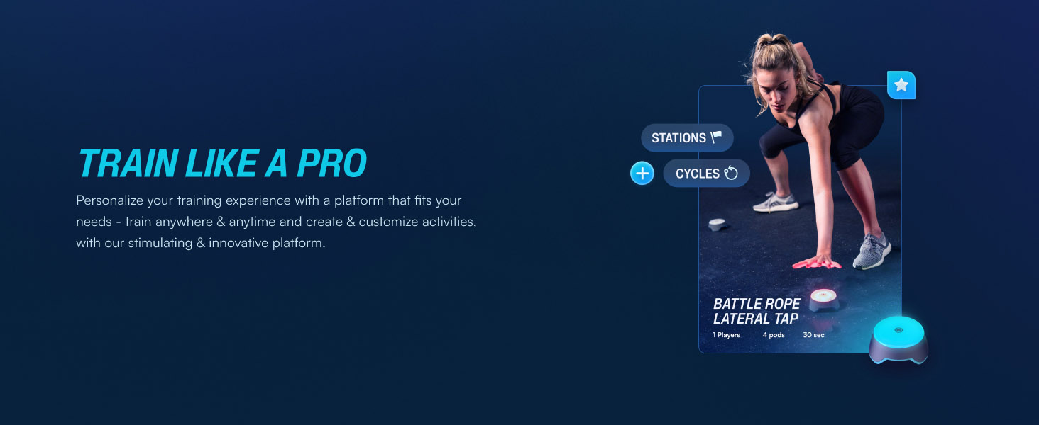 ✔️ تطبيق مبتكر - تتكون منصة BlazePod من جزأين: تطبيق الهاتف المحمول والبودات. يعد تطبيق الهاتف المحمول بمثابة "العقل المدبر" لمنصة BlazePod التي تتحكم في الكبسولات، وهي أجهزة صغيرة ومضيئة يتم تنشيطها عن طريق اللمس. يوفر التطبيق الإبداع والمرونة للتدريب والتعامل مع الأنشطة والاختبارات والتحليلات وغير ذلك الكثير.
