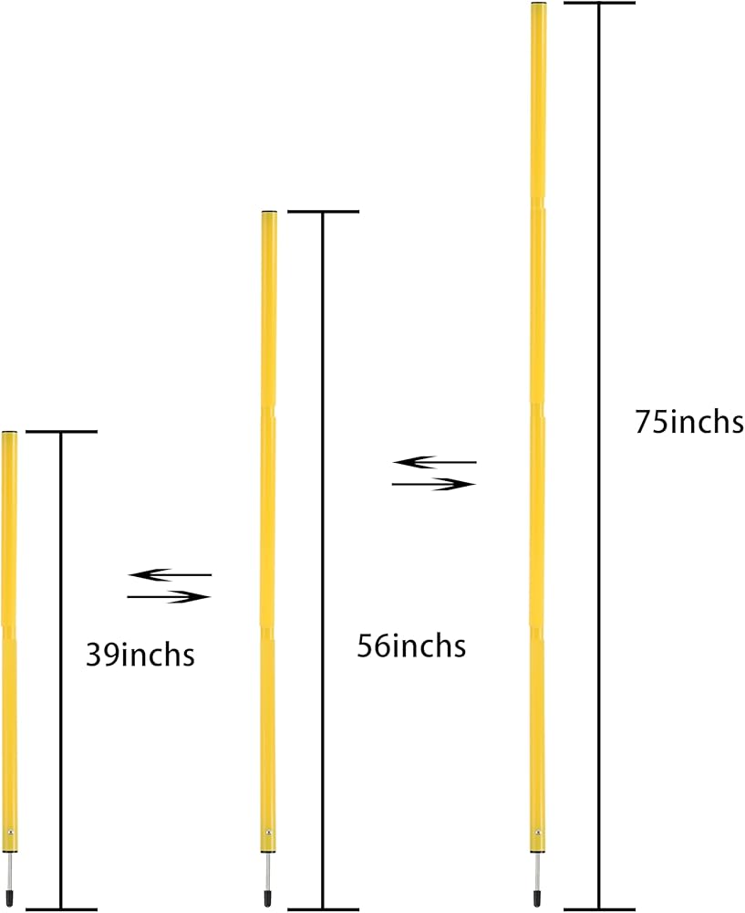 【المواد والأبعاد】: طول أعمدة رشاقة كرة القدم 40-75 انش. لن تنكسر أعمدة رشاقة كرة القدم بسهولة، مصنوعة من البلاستيك ولكن سمك الأنبوب سميك بما يكفي لأعمدة تدريب كرة القدم، طول قابل للتعديل.