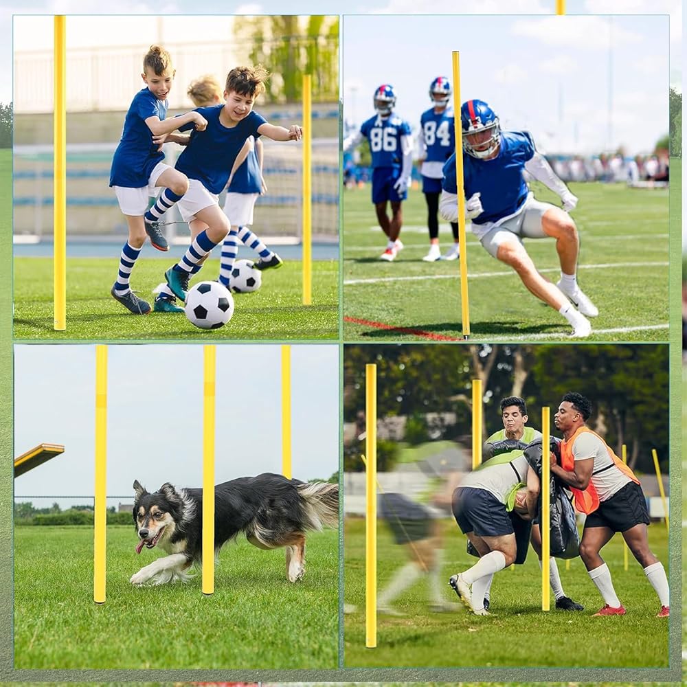 4 أعمدة تدريب، أعمدة دوارة متينة مناسبة جدًا للمدربين لتدريب الفرق الكبيرة على مستوى النادي أو الجامعة، ويمكن استخدامها أيضًا في تمارين الفناء الخلفي المنفصلة.