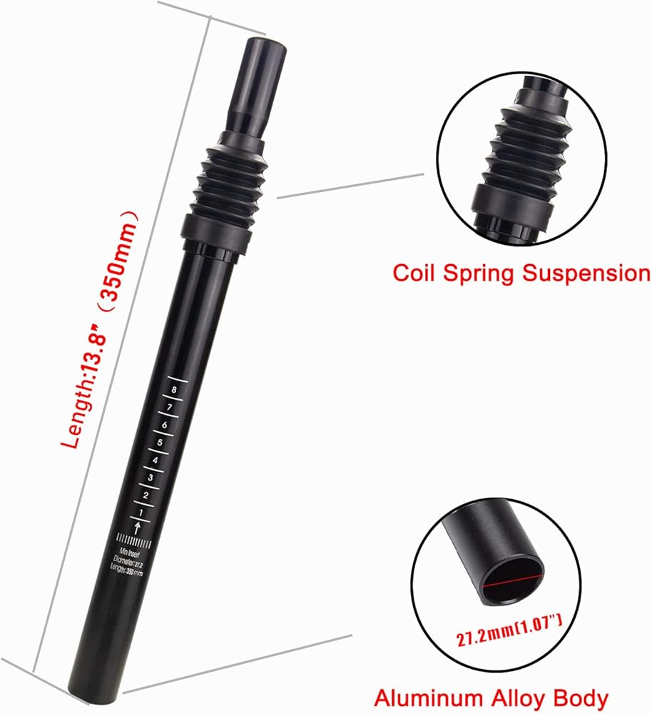 حجم عمود المقعد: 28.6*350 مم (1.13 × 13.8 بوصة). يرجى قياس القطر المطلوب فعليًا قبل الشراء. مشبك السرج غير متضمن، يرجى شراء مشبك السرج بشكل منفصل إذا لزم الأمر.