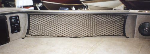 شبكة تخزين بحرية 81.28 سم مع 8 خطافات ومسامير لتخزين سترات النجاة والملابس والمقتنيات. تمنع الأشياء من النفخ من قاربك. متوفرة بمقاسين مختلفين لتناسب أي قارب. يتمدد العرض من 25.4 سم إلى 45.72 سم.