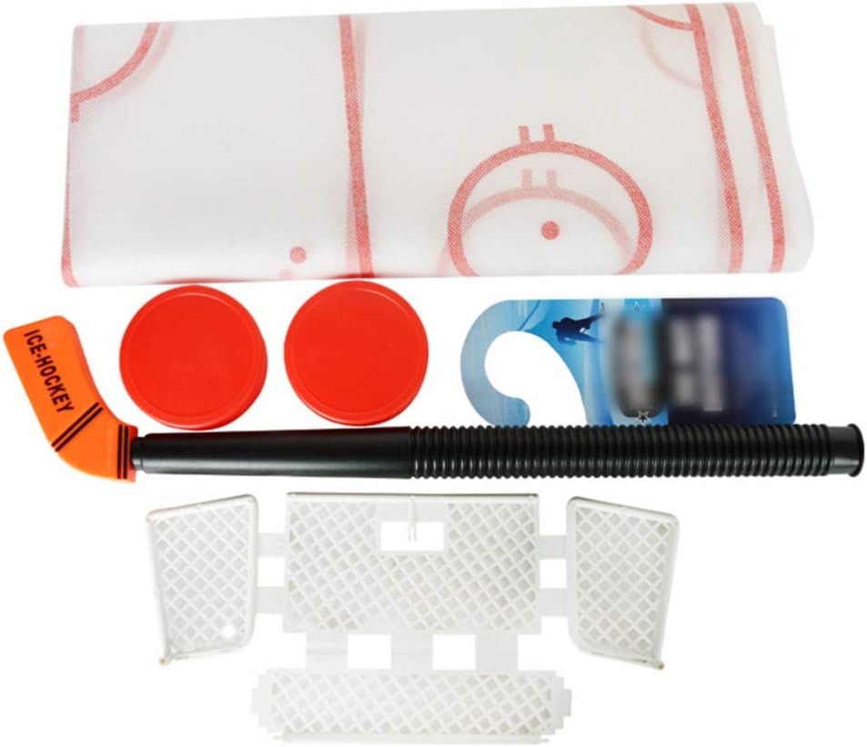 The item is a set small hockey training aid toy for home indoor and outdoor use. Small size but for funny playing, suitable for toilet use for decompress and relax plaything. Also you can place it wherever you want like living room, office, balcony, etc.