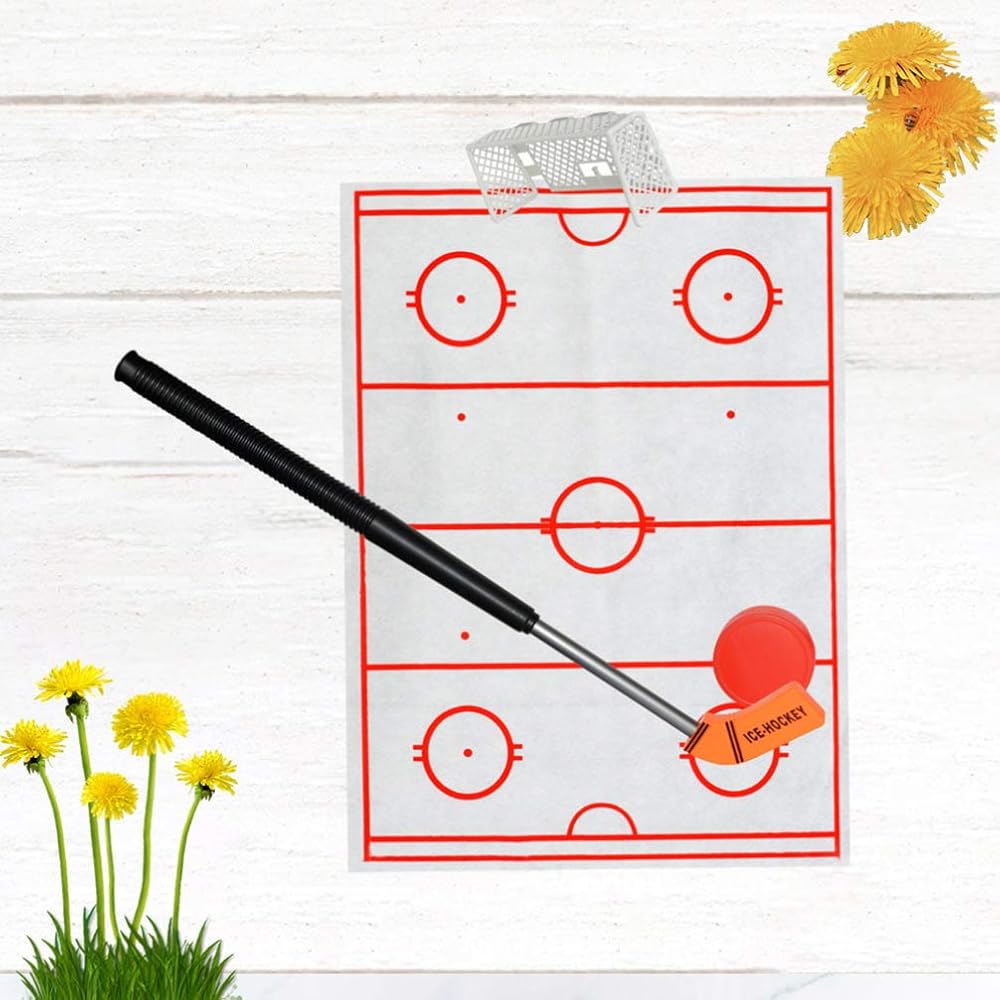 - Small hockey set for indoor and outdoor playing, portable and practical.
