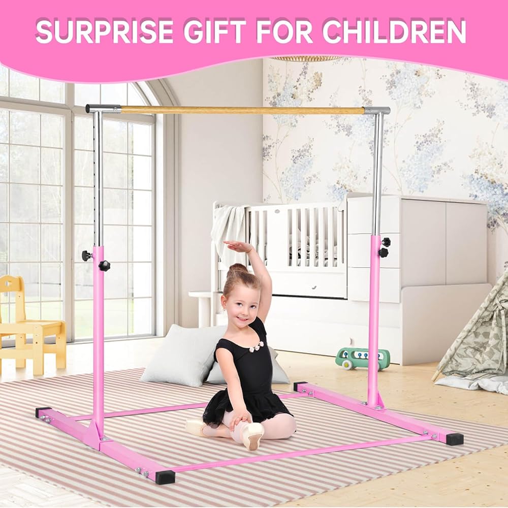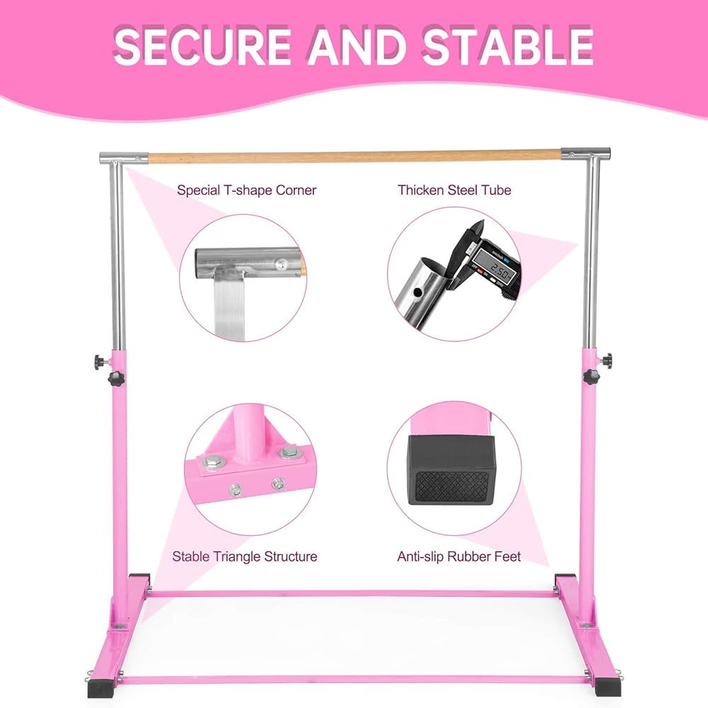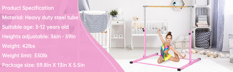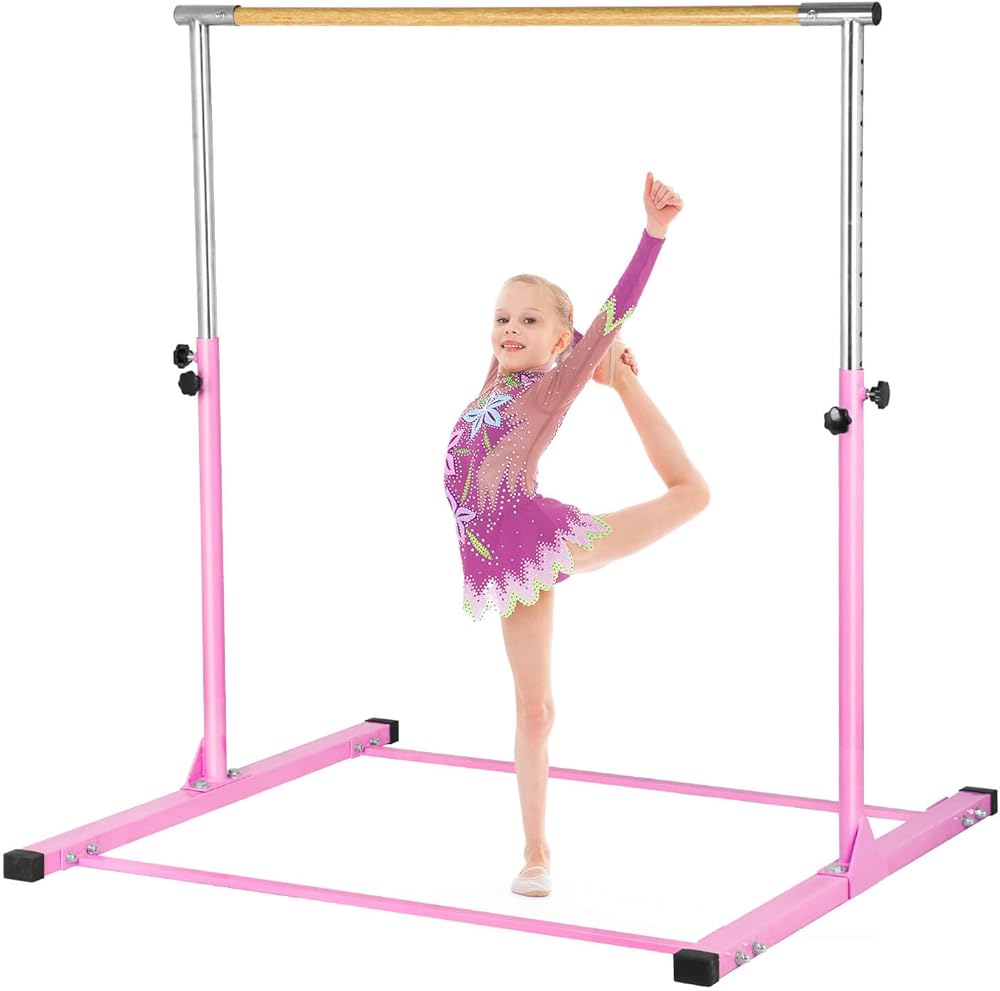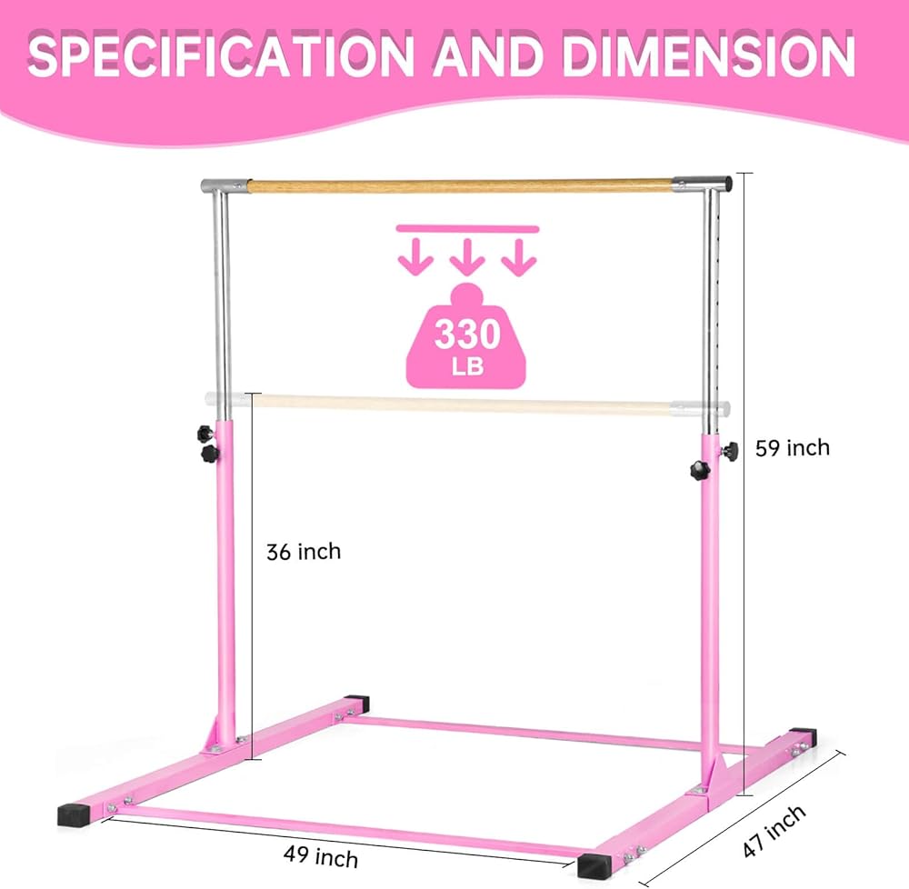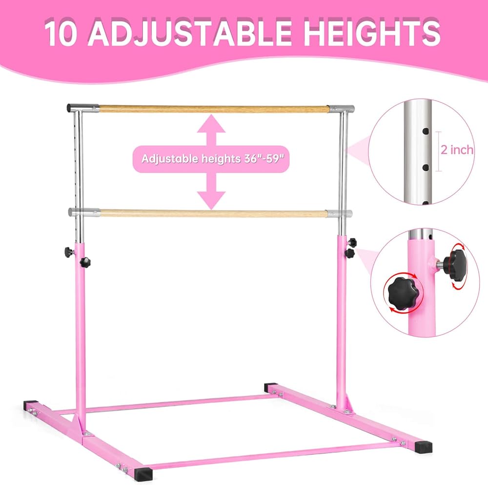 2. يحتوي شريط كيب الجمباز هذا على 10 إعدادات ارتفاع قابلة للتعديل يمكن تعديلها من 36 بوصة إلى 59 بوصة، مما يسمح لطفلك بالنمو معها والتمرين على ارتفاعات مختلفة.