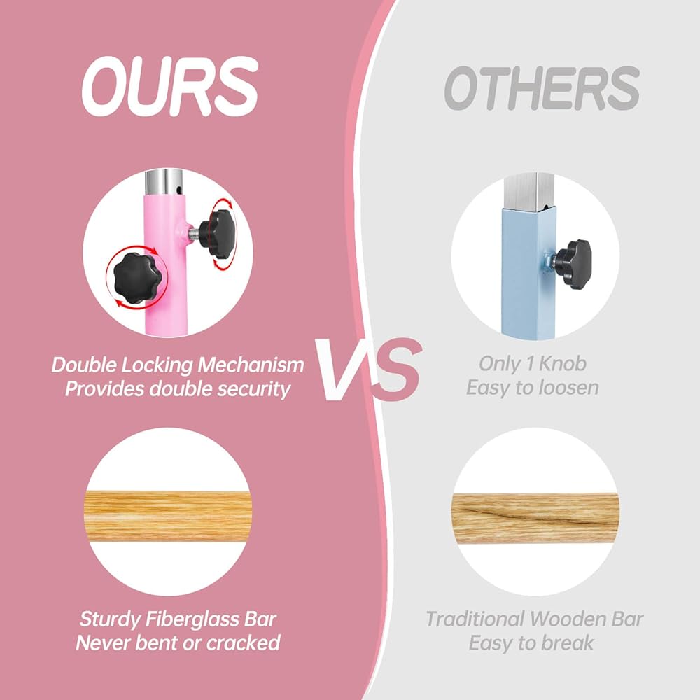 • 【نظام قفل مزدوج】: تعتمد قضبان الجمباز الخاصة بنا على آلية قفل مزدوجة بدلاً من مقبض واحد للأمان. سيتم تثبيت الأنابيب القابلة للتعديل بإحكام على الارتفاع المطلوب بعد شد المقبضين، مما يوفر ضمانًا مزدوجًا لسلامة طفلك.