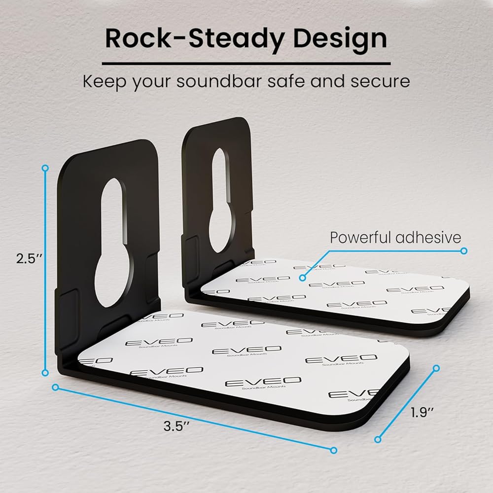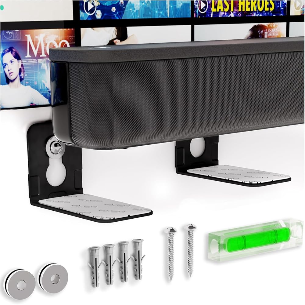 حامل مكبر الصوت EVEO العالمي - يتم تثبيت شريط الصوت تحت التلفزيون، ودعامة تثبيت شريط الصوت تحت التلفزيون، وحامل جدار مكبر الصوت، وحامل شريط الصوت تحت التلفزيون لأجهزة Samsung وBose وSony وLG وVizio والمزيد من رف مكبر الصوت