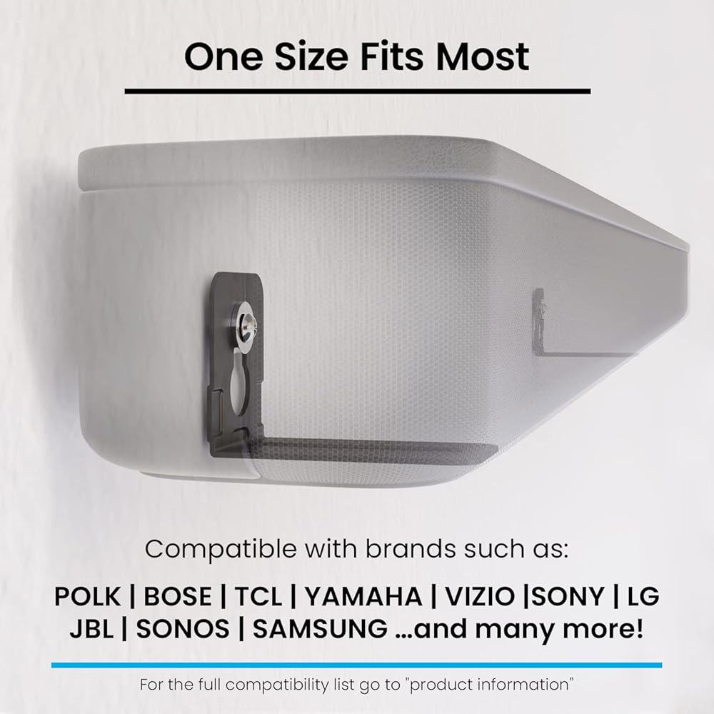 حامل جداري لمكبر الصوت العالمي لجهاز Sony HT-S350 HT-CT290 HT-Z9F HT-G700 HT-S100F HT-S200F HT-ST5000 HT-S40R HT-X9000F HT-MT300 HT-X8500؛ لـ TCL Alto 3، 5، 5+، 6، 6+، 7، 7+، 8، 8i، 9+ Sound Bar؛ لمكبرات الصوت JBL 5.1، 3.1، 2.1؛ لـ Vizio SB2920-C6 SB3821-D6 SB36512-F6 SB3621n-F8M SB3220n-F6 SB2821-D6 SB3821-C6 SB3621N-E8 SB4051-D5 حامل شريط الصوت، حامل مكبر الصوت لـ Roku Smart Soundbar، Roku Streambar، Harman Kardon، Denon، Rca، Nakamichi والمزيد من مكبرات الصوت التي يتم تركيبها تحت التلفزيون