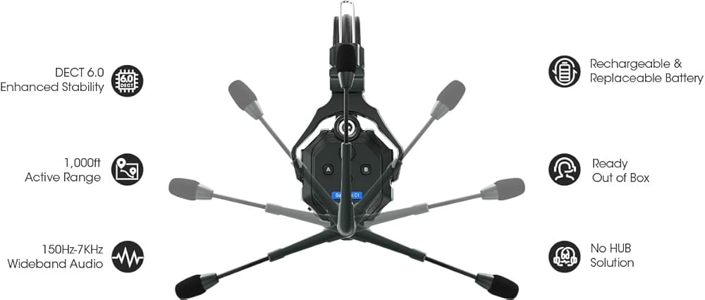 أداء متفوق: يستخدم نظام الاتصال الداخلي اللاسلكي Hollyland Solidcom C1 تقنية DECT 6.0 ويعمل في نطاق 1.9 جيجا هرتز مما يوفر اتصالًا واضحًا تمامًا ضمن دائرة نصف قطرها 1000 قدم (300 متر) LOS. تشتمل كل سماعة رأس على نظام تنوع هوائي مزدوج للتخلص من التداخل وتعزيز الأداء. تشتمل على بطاريات قابلة لإعادة الشحن (2 لكل سماعة رأس) تسمح كل منها بالتشغيل المستمر لمدة تصل إلى 5 ساعات.