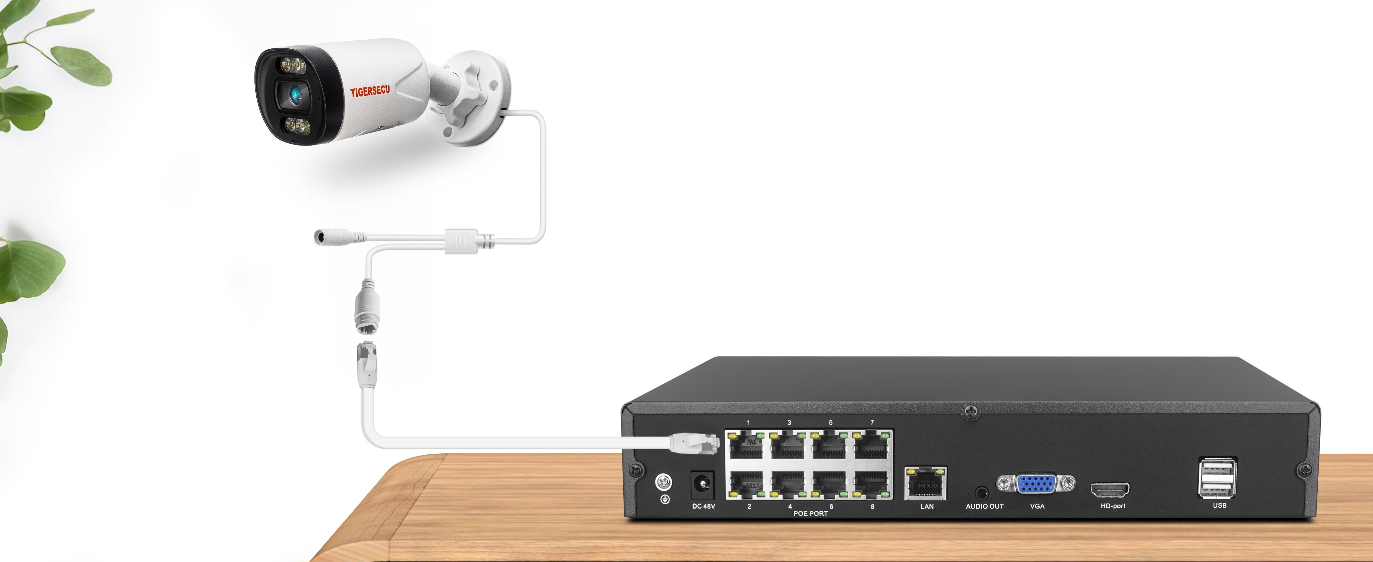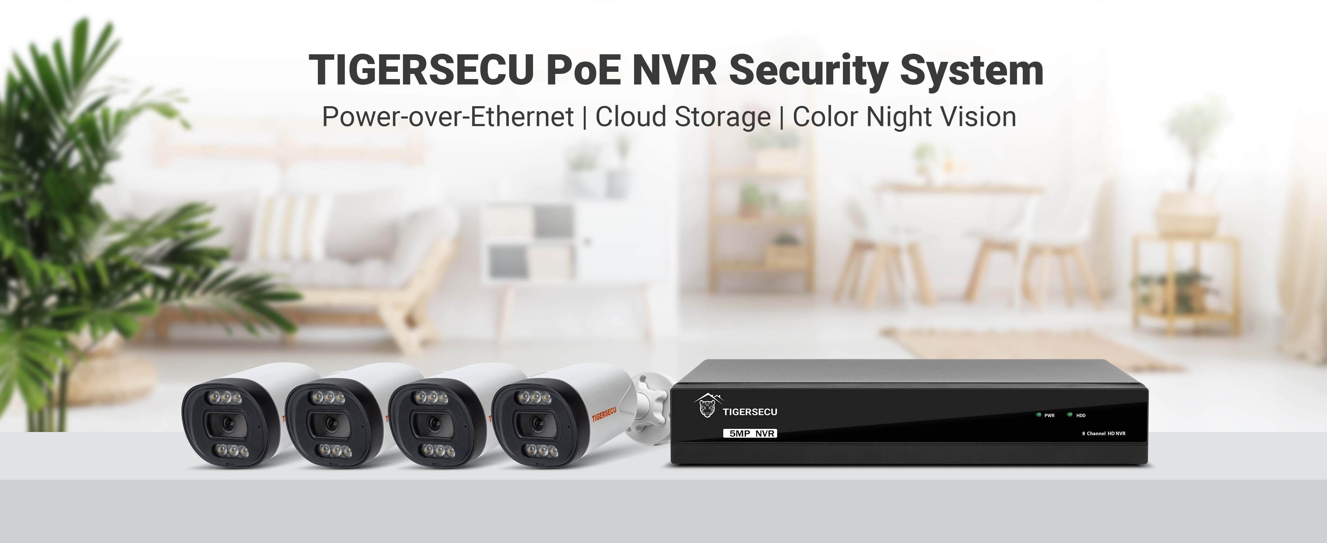 نظام كاميرا أمان TIGERSECU Ultra HD 5MP 4 كاميرات و8 قنوات PoE NVR صديق للبيئة. سهلة التركيب، ما عليك سوى توصيل كاميرات أمان IP التي تعمل عبر إيثرنت بمنفذ NVR PoE والاتصال بـ NVR في دقائق. لا حاجة إلى مصدر طاقة إضافي للكاميرات، مما يجعل التثبيت سهلاً.