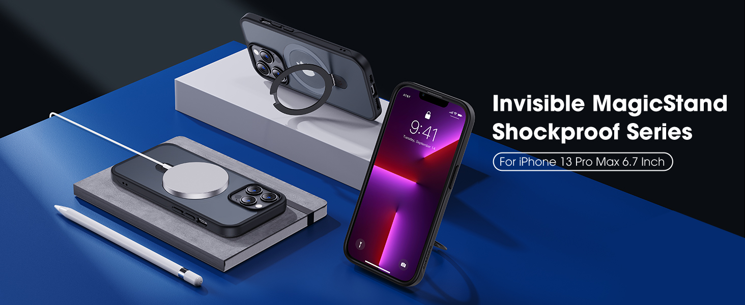 【سلسلة MagicStand الجديدة كليًا - أبعد من كونها】بعد سنوات من التخطيط والتصميم المتعمد، تعد CASEKOO أول من قام بتصميم سلسلة MagicStand الجديدة غير المرئية المتوافقة مع حافظة iPhone 13 Pro Max. لقد قمنا بدمج التكنولوجيا المغناطيسية القوية مع المسند القابل للطي من خلال تطبيق فلسفة التصميم المدمجة والعملية. يمكن ربط حافظة MagicStand بسهولة بجميع ملحقات MagSafe. يمكن طي المسند متعدد الاستخدامات الموجود في الجزء الخلفي من حافظة الهاتف ليشكل أخدودًا عند عدم استخدامه.