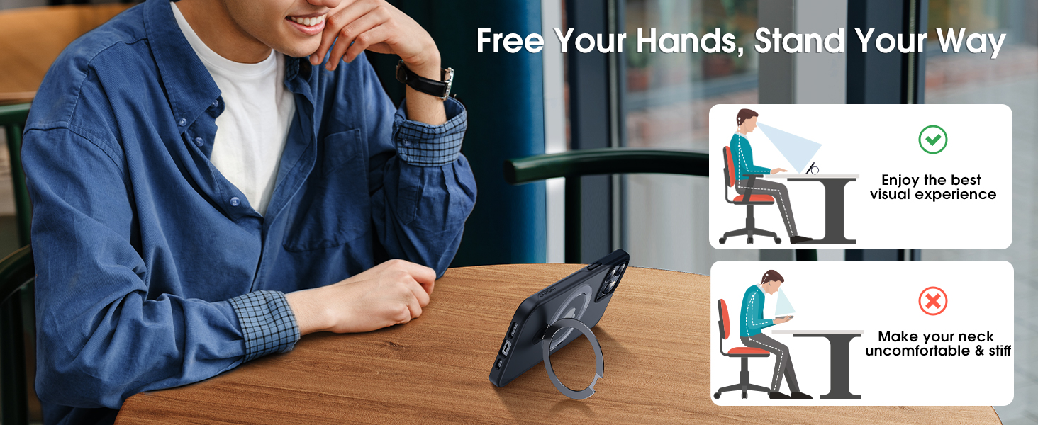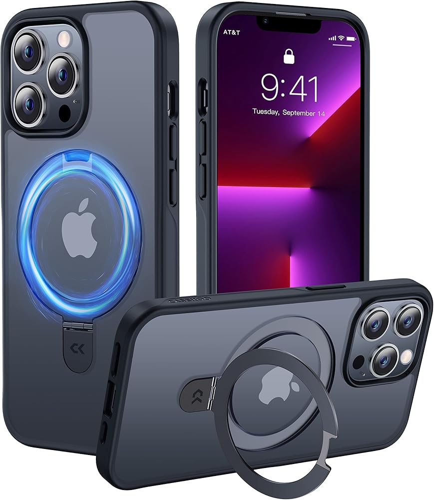【بدون استخدام اليدين، بدون متاعب】جراب CASEKOO مصمم لهاتف iPhone 13 Pro Max يشتمل على تصميم حامل مبتكر غير مرئي مع مظهر حصري حاصل على براءة اختراع. تم تصنيع المسند الدائري من سبائك الألومنيوم خفيفة الوزن والمتينة، مما يرفع قابلية حمل حافظة الهاتف إلى مستوى جديد. بالإضافة إلى ذلك، يمكن وضعه في الوضع الرأسي أو الأفقي بشكل ثابت. يمكنك ضبطه بين 40 درجة ~ 120 درجة حسب رغبتك. استمتع بكل لحظة مشاهدة.