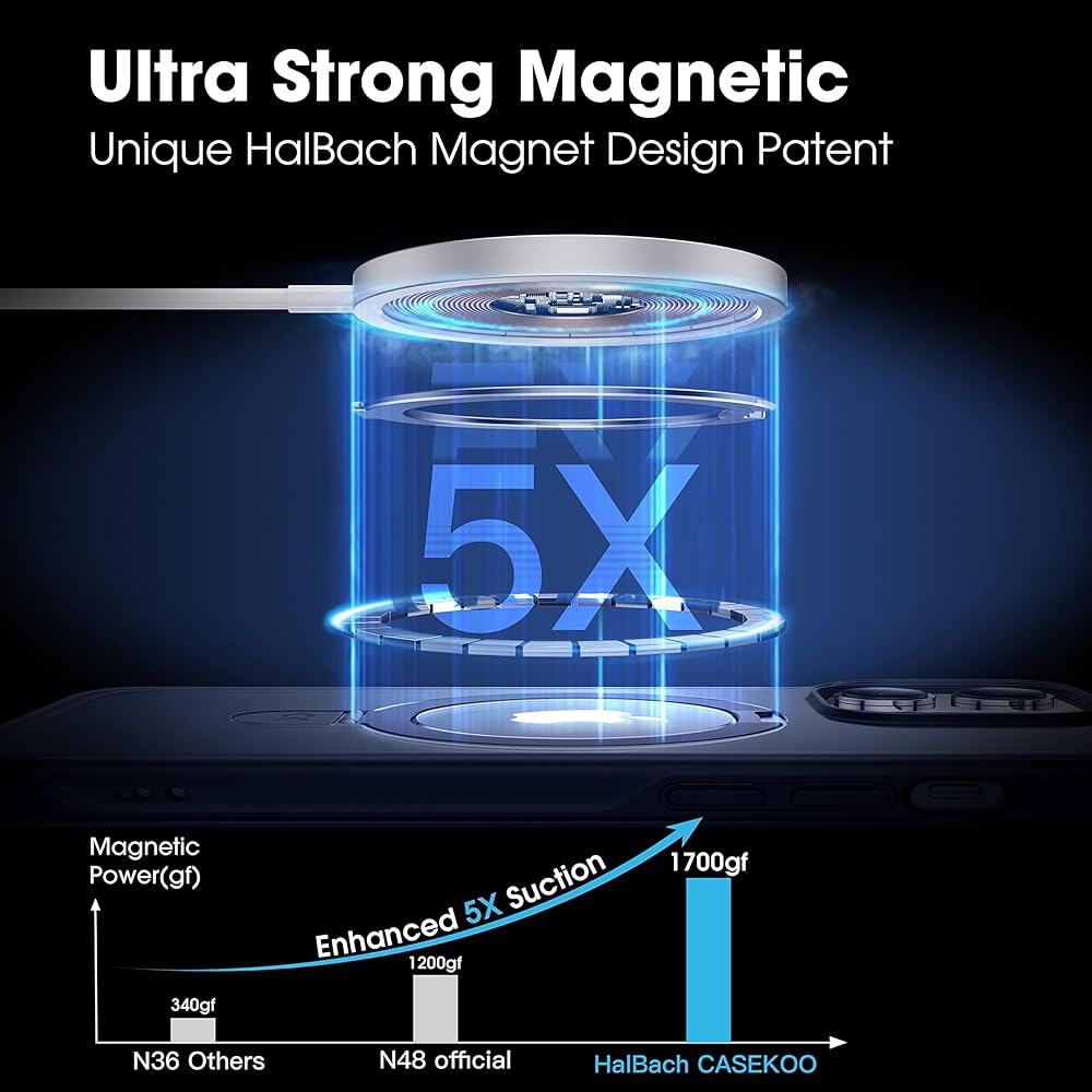【السحر المغناطيسي】تتوافق حافظة MagicStand مع جميع ملحقات MagSafe وأجهزة الشحن اللاسلكية المعتمدة من طرف ثالث. إنه يوفر هيكل حلقة مغناطيسية مدمج مكون من 48 قطعة، تم ترتيبه بشكل واضح باستخدام تقنية مجموعة MagPrime من CASEKOO، مما يسمح بمغناطيسية أقوى مرتين من تلك المغناطيسية الرسمية. يضمن MagPrime فقدان الطاقة بنسبة 0% تقريبًا أثناء الشحن اللاسلكي، مما يجعل الشحن أسرع وأكثر أمانًا. إنه يقلل من وقت الشحن الإجمالي ويحسن تجربة الشحن اللاسلكي.