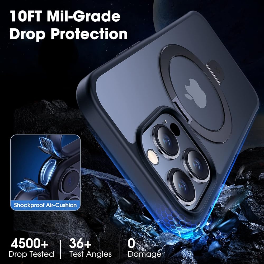 【إعادة تعريف الحماية من السقوط من الدرجة العسكرية】استنادًا إلى أكثر من 5000 اختبار لمقاومة السقوط الشديد، فإن متانة ومتانة حافظة MagicStand تتفوق على معظم حافظات الهواتف العامة. علاوة على ذلك، فإن الظهر المصنوع من مادة البولي كربونات المقاوم للصدمات ووسائد الوسادة الهوائية يزيد من متانته ويحمي هاتفك من السقوط والصدمات اليومية. تمنع حدود الإزاحة مقاس 2.5 مم الموجودة فوق فتحة الكاميرا خدش العدسة؛ إطار مقاس 1.5 ملم فوق الشاشة يحافظ على شاشة iPhone الخاصة بك من التلف.